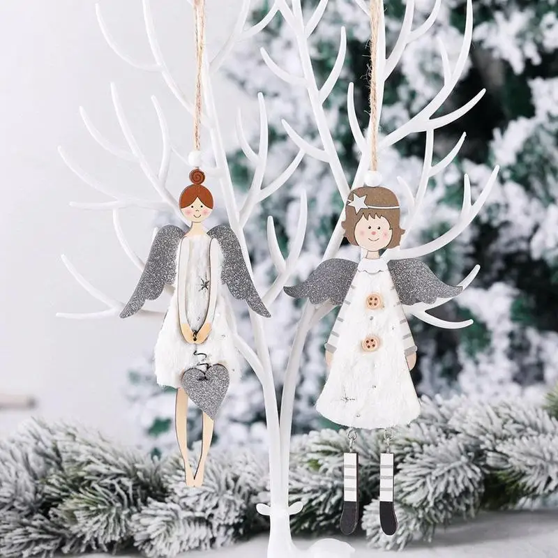 Плюшевый деревянный кулон в форме ангела для девочки, Рождественское украшение, подарок, детский кулон, кулон, аксессуары C9r2