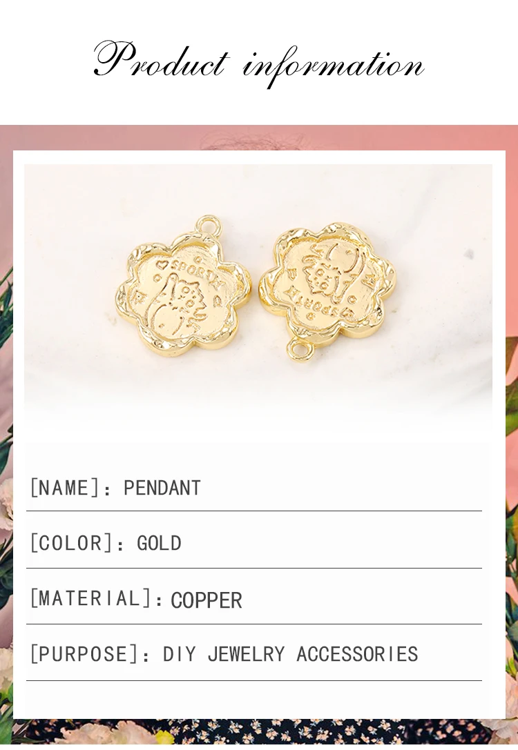 Оптовая продажа с фабрики, позолоченные латунные подвески в форме цветка, ожерелье и браслет, серьги, ювелирные изделия сделай сам