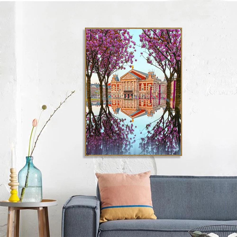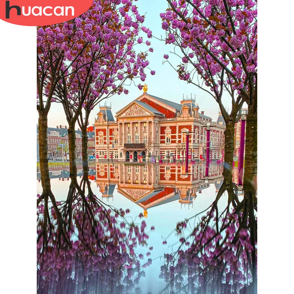 HUACAN картина по номеру замок пейзажные наборы картина по номеру дерево для взрослых рисование на холсте Ручная роспись подарок домашний декор