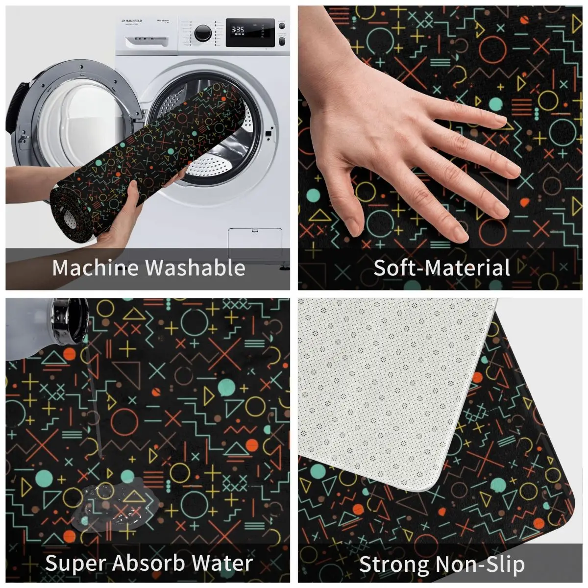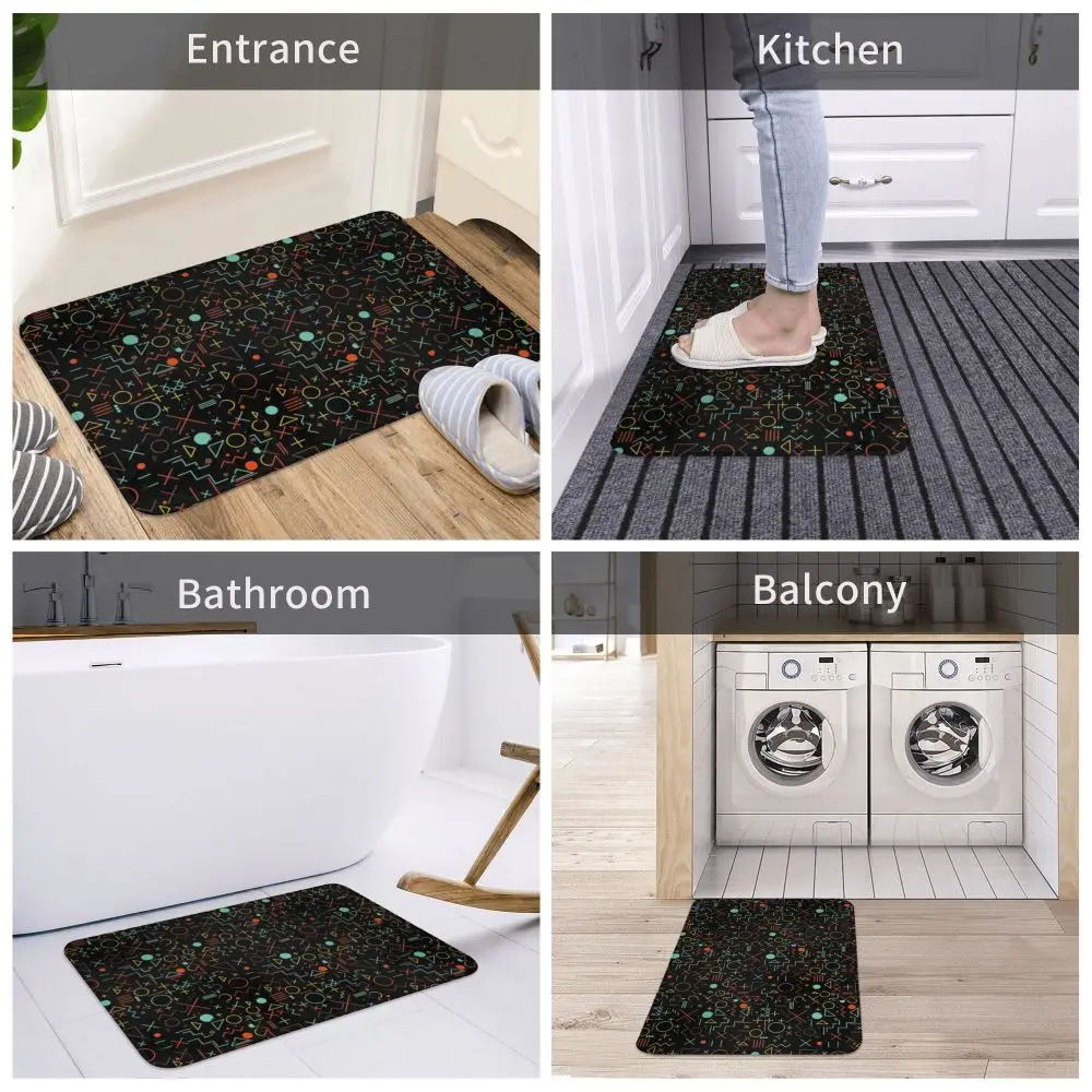 Цветной полиэстеровый Коврик для прихожей с геометрическими фигурами, коврик, коврик для ног, нескользящий Противоскользящий коврик для входа, кухни, спальни, балкона, мультяшный
