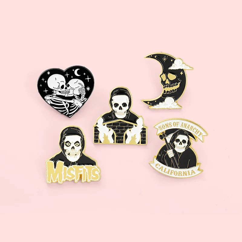 Эмалированная заколка в стиле Хэллоуин, панк, призрак, череп, модный ужас, серп, черный человек, Skeletion Misfits, луна, значок, брошь для сумки, ювелирные изделия, подарки