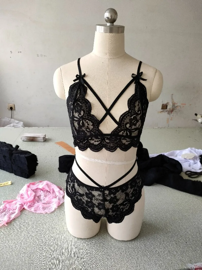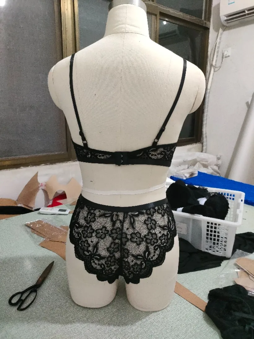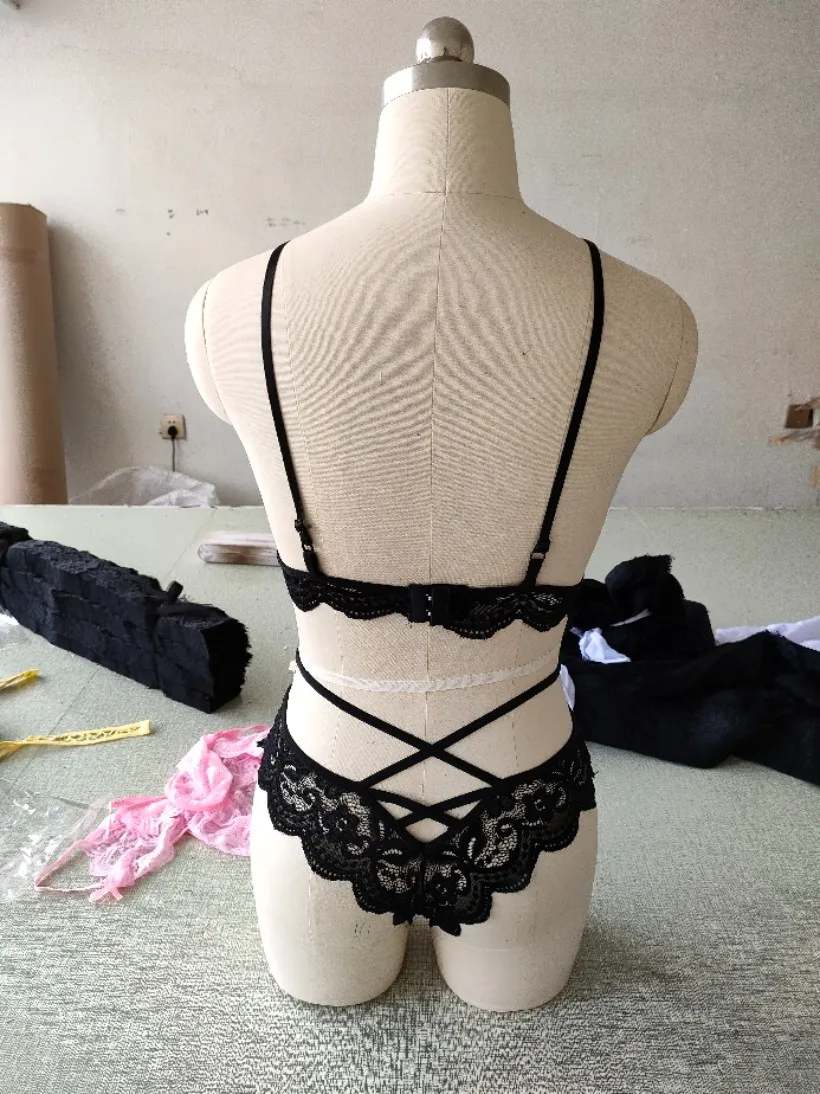 Женское кружевное нижнее белье с вышивкой и кружевным вырезом