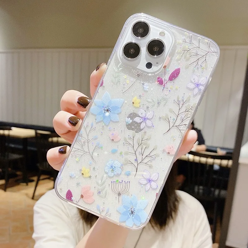 Милый блестящий чехол для телефона с высушенными цветами для iPhone...