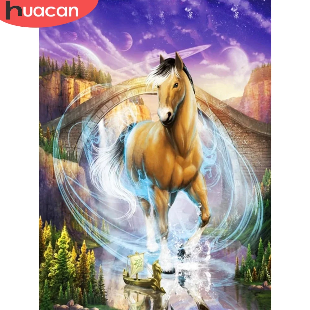 HUACAN картина по номеру Лошадь Животное ручная роспись Настенная картина по номеру озеро рисунок на холсте украшение дома DIY подарок