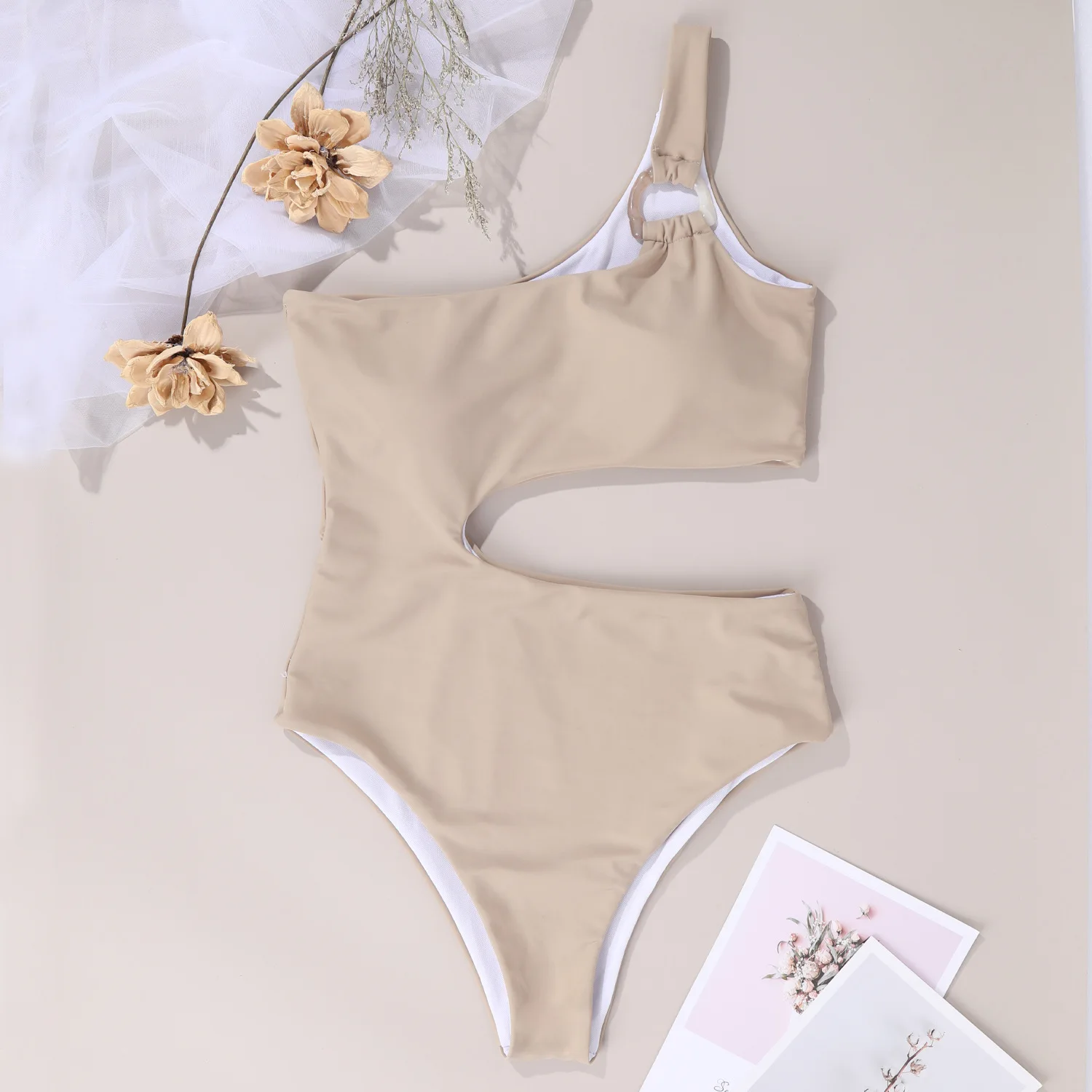 2021 однотонный купальник на одно плечо, женский сексуальный купаль...