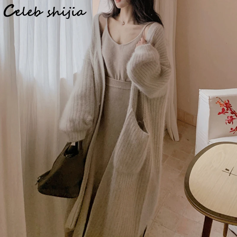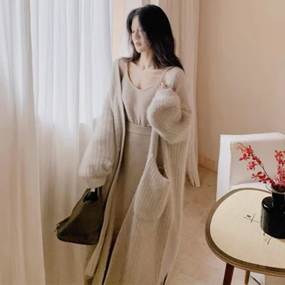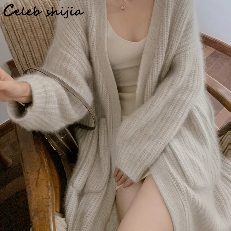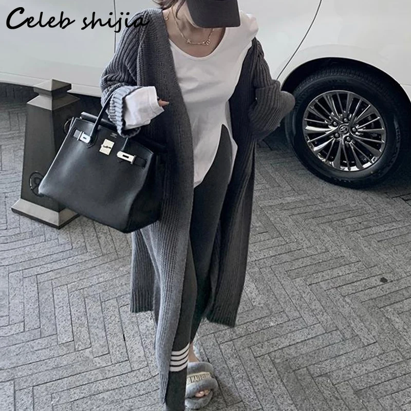 Кардиган женский шерстяной, длинный вязаный, оверсайз, в Корейском ...