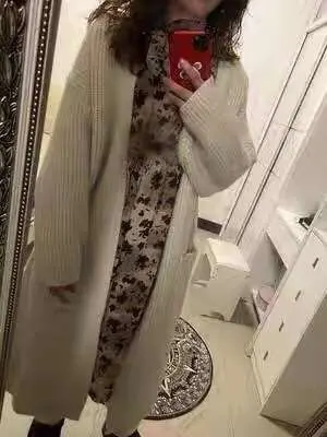 Женский длинный кардиган с карманами, бежевый Кардиган большого размера в Корейском стиле, одежда для улицы на осень и зиму, 2021