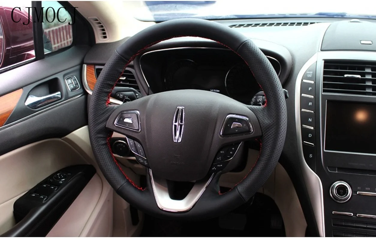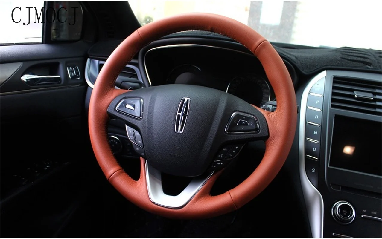 Высококачественная Кожаная оплетка руля для Lincoln MKX MKC MKZ, выполненная вручную, аксессуары для салона автомобиля