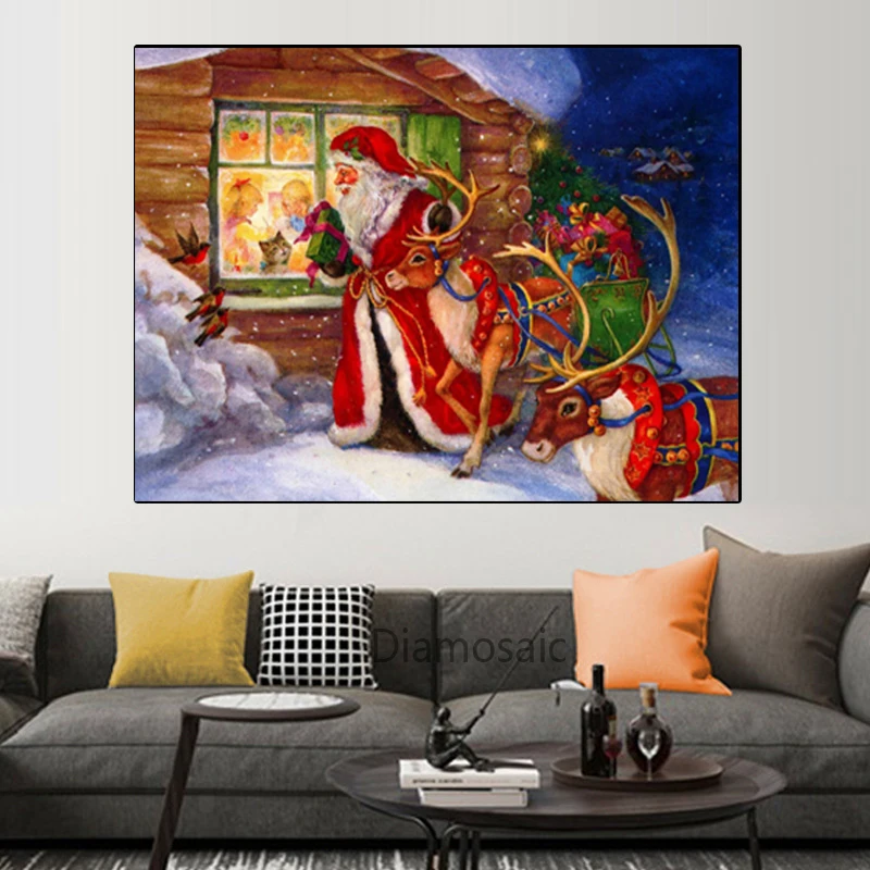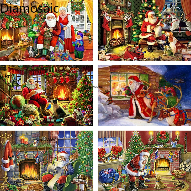 Алмазная картина с Санта-Клаусом, вышивка с кристаллами, прямоугольная, круглая, Рождественский Декор, подарок