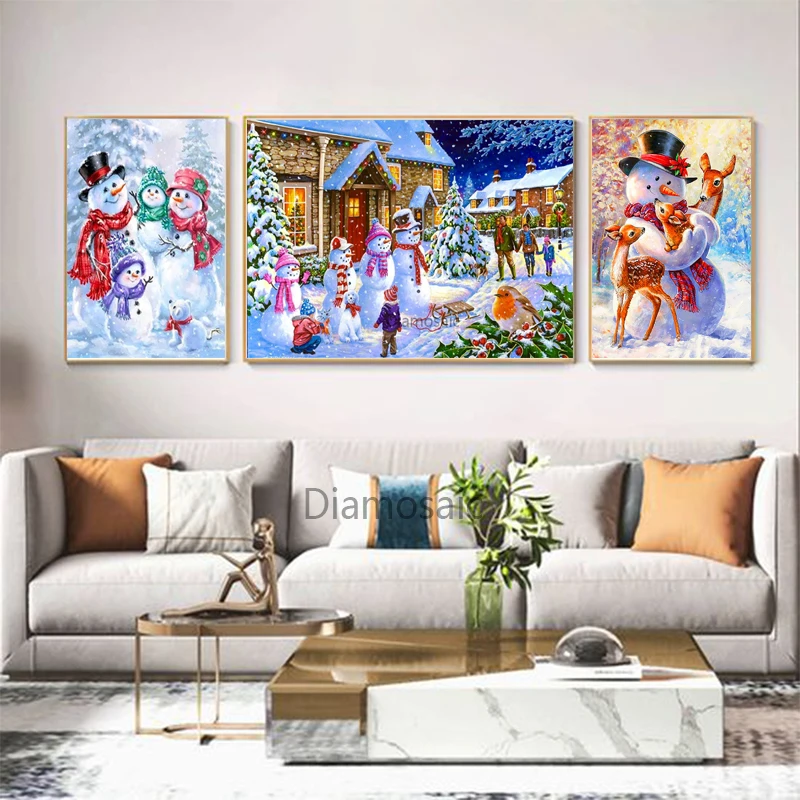 Алмазная 5D картина с мультяшным снеговиком, сделай сам, полный наб...