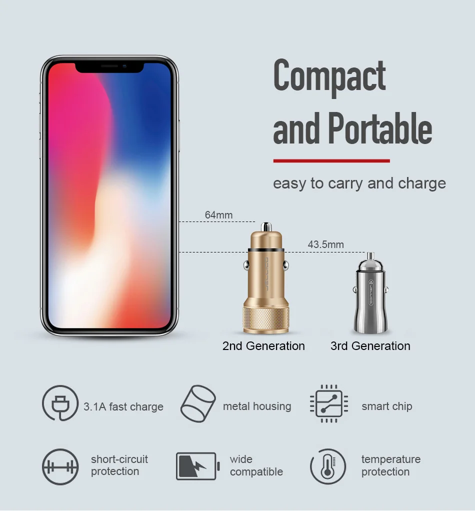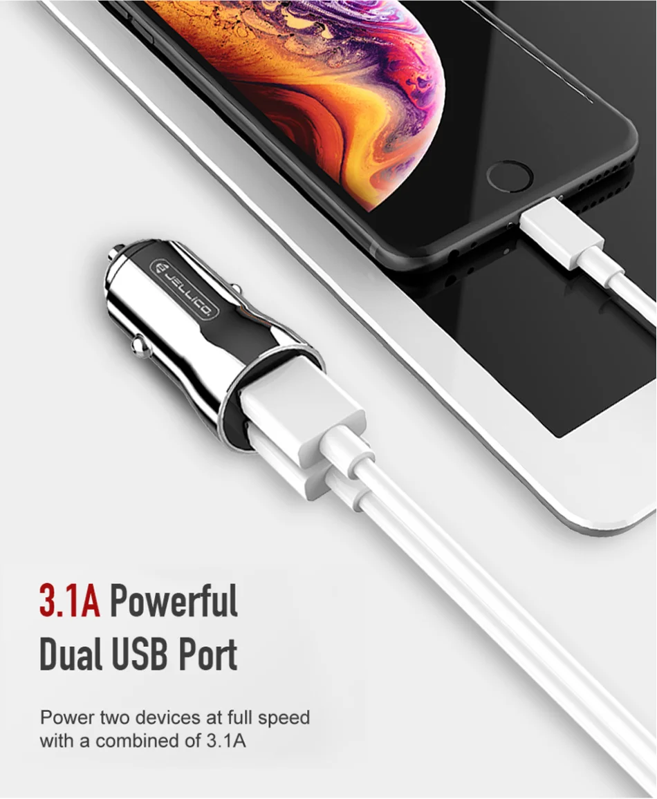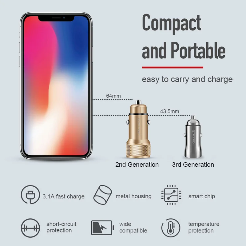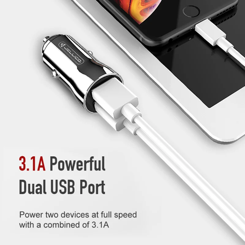 Jellico QC 3,0 Металлический Двойной мини USB Автомобильное зарядное устройство мобильный телефон зарядное устройство 2 порта USB быстрое автомобильное зарядное устройство для iPhone Samsung Автомобильное зарядное устройство