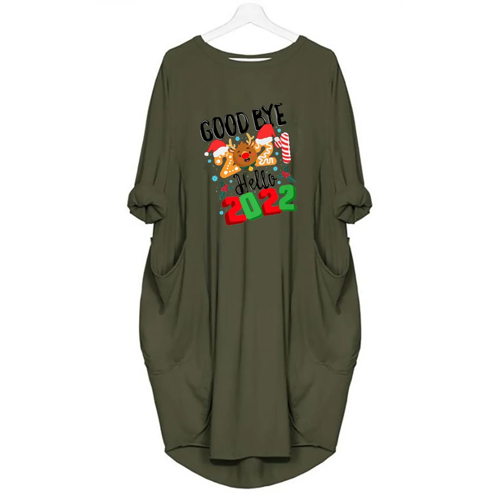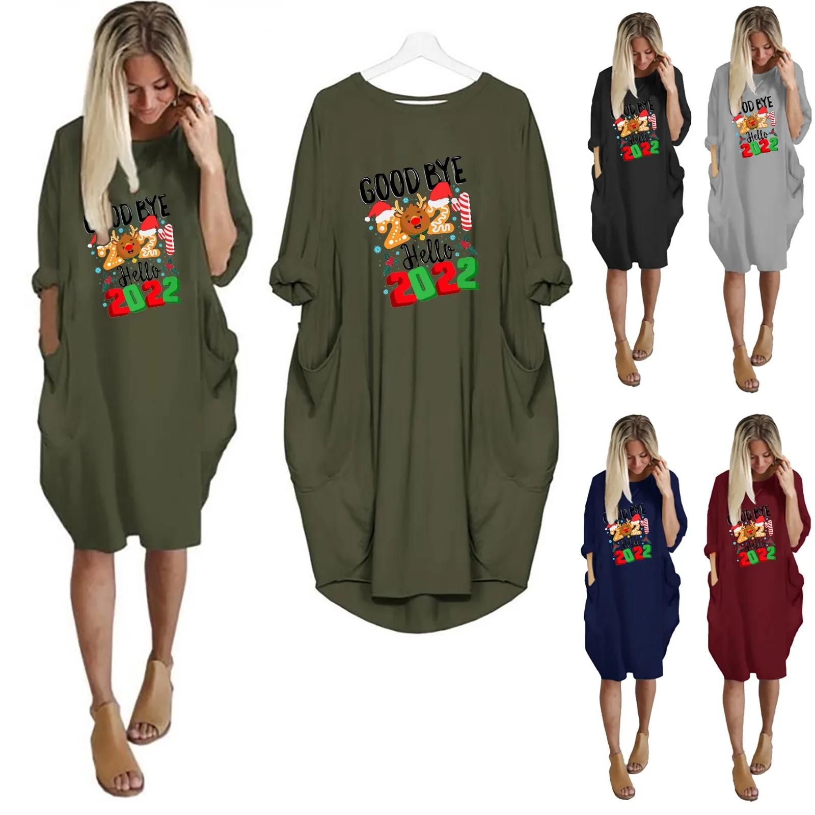 2022 новогодние платья, женское рождественское осенне-зимнее повседневное свободное платье с карманами и длинным рукавом, милое платье с принтом, платье, платья S