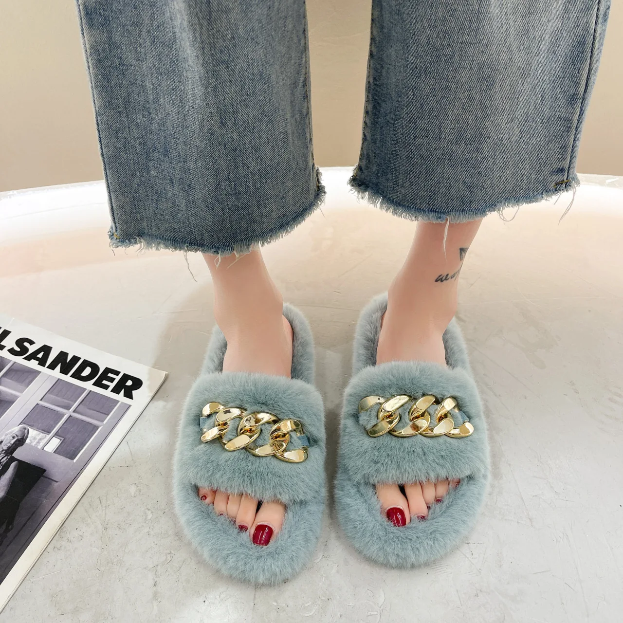 Меховые сланцы для женщин, пушистые зимние тапочки, женская обувь, оптовая продажа, роскошные шлепанцы на платформе из натурального Лисьего меха, женские сандалии из лисьего меха