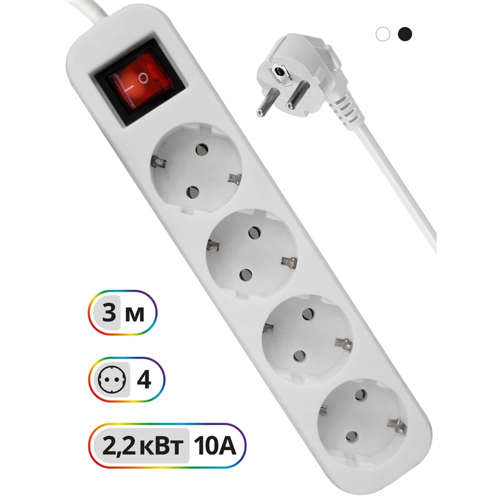Качественный и удобный сетевой фильтр — важнейшая деталь устройства рабочего места в офисе или дома, также он пригодится в быту, если вам необходимы дополнительные места питания приборов. Фильтр изготовлен из негорючего пластика, оснащен вилкой и 4 розетками стандарта EURO (CEE 7/4 с заземлением) и выключателем с подсветкой. Его также можно закрепить на стену. Длина шнура составляет 3 м. Техническое описание Тип: сетевой фильтр Материал корпуса: пластик Выполняемые функции: фильтрация входного напряжения Номинальное напряжение: 220 — 230 В Рабочая частота: 50/60 Гц Максимальная мощность: 2200 Вт Максимальный ток нагрузки: 10 А Тип вилки: EURO (CEE 7/4 с заземлением) Количество розеток: четыре Тип розеток: EURO (CEE 7/4 с заземлением) Крепление на стену: возможно Длина шнура: 3 м Особенности: корпус из негорючего пластика, кнопка включения/выключения с подсветкой Размер: 4,5×4,0×22,9 см