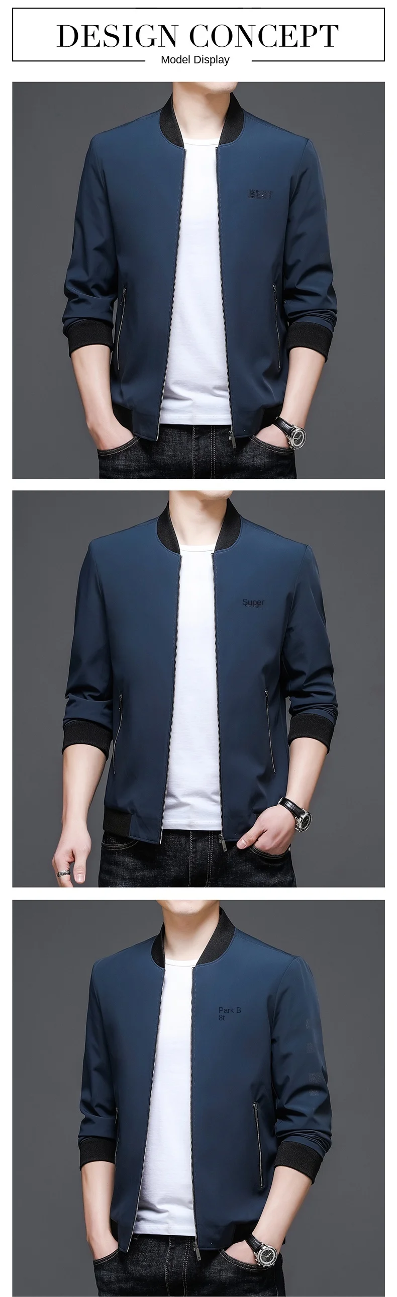 Новый бренд, Повседневная мода, Бейсбольный воротник, Осень-зима, М...