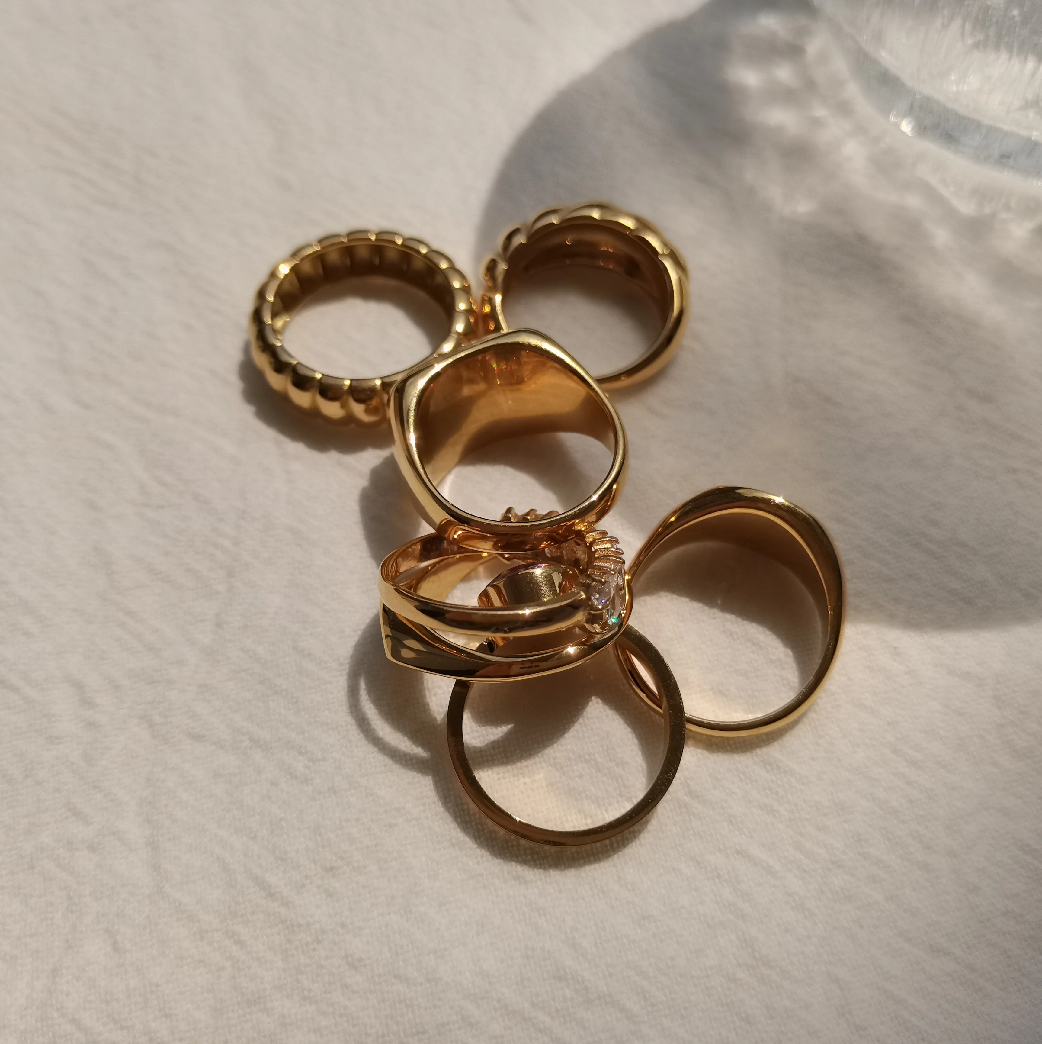 Золотые кольца без блеска с большим камнем из циркония, металлическ...