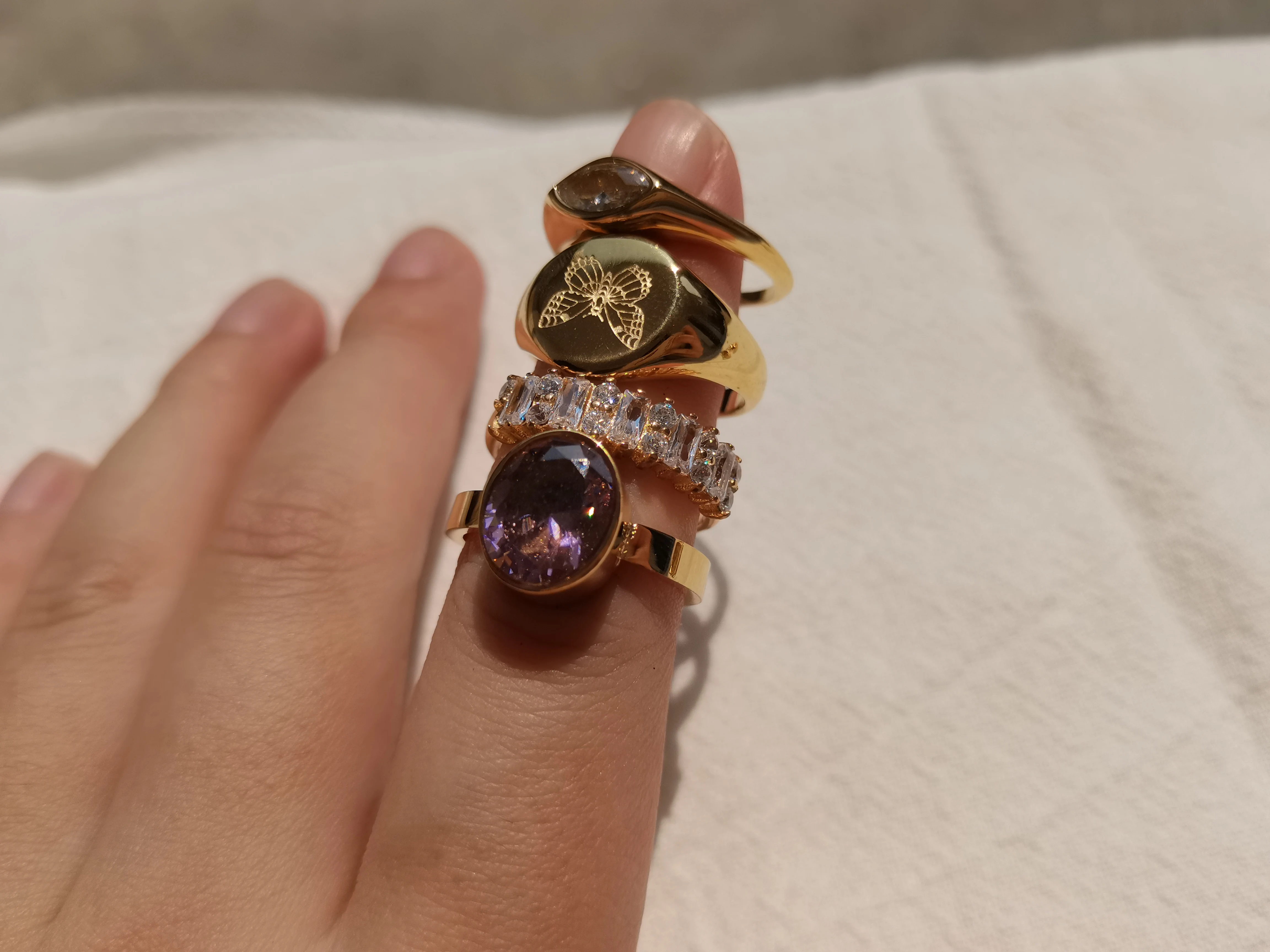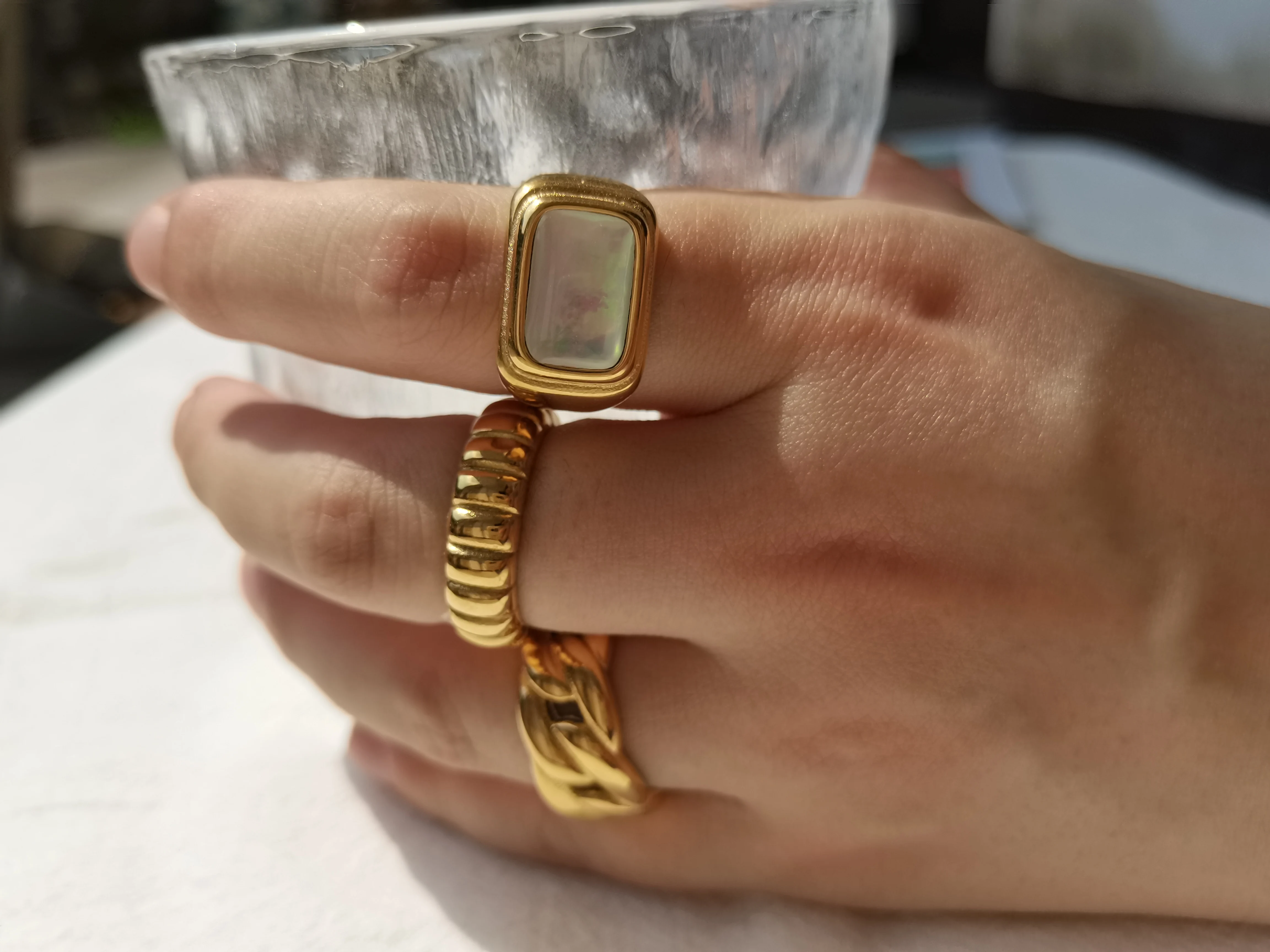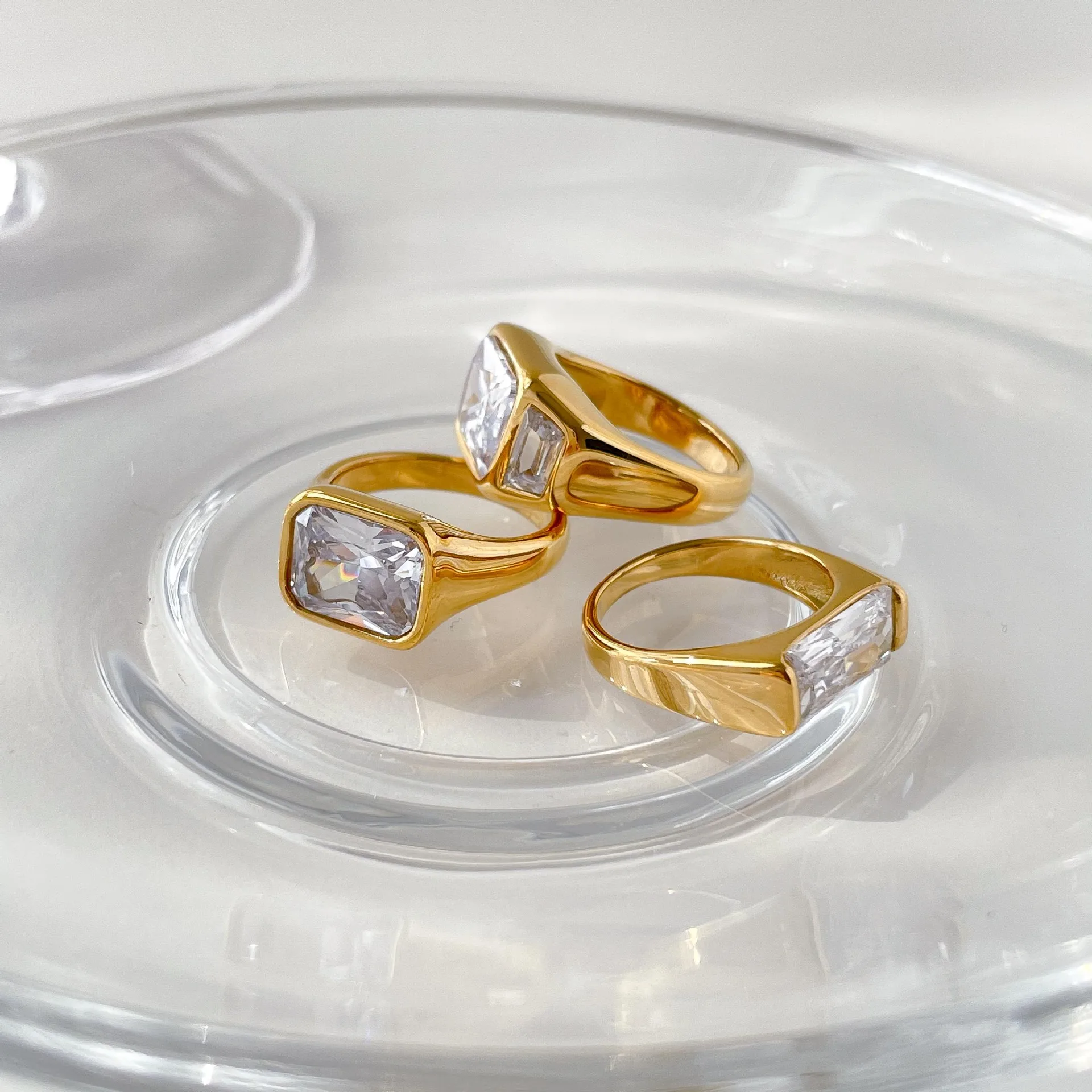 Blingbling прямоугольное циркониевое кольцо 18K Золото PVD покрытие...