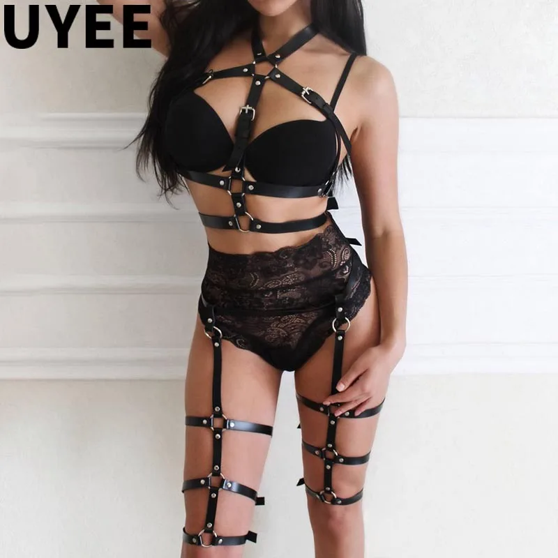 Сексуальное женское бондажное белье UYEE Goth, женское нижнее белье, женское боди, ремень для бюстгальтера, пояс для талии, подтяжки для бедер, пояс с мечом