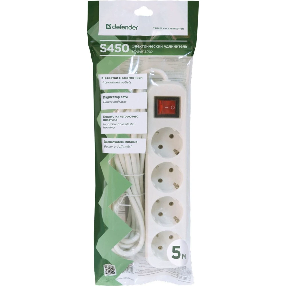Сетевой фильтр Defender S450 4 Sockets 5.0m 99239