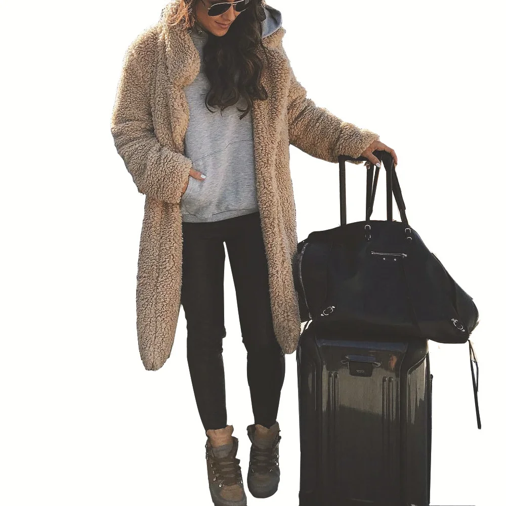 Пальто женское из искусственного меха, осенне-зимнее, теплое, длинное