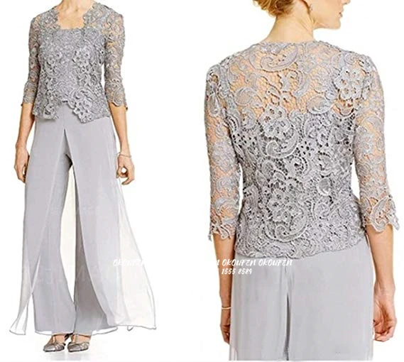 Платье для матери невесты, костюм из трех предметов с разрезом и брюками, платья для свадебной вечеринки, Персиковое шифоновое платье-Папа, женское платье