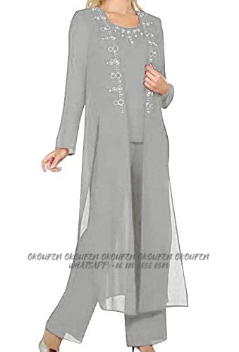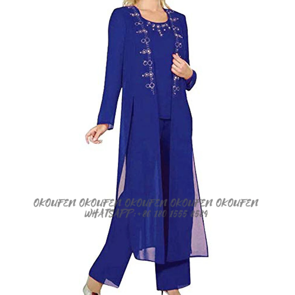 Красные платья для матери невесты для свадебной вечеринки костюмы из 3 предметов брюки длиной до щиколотки длинный жакет из шифона с бусинами винтажные платья