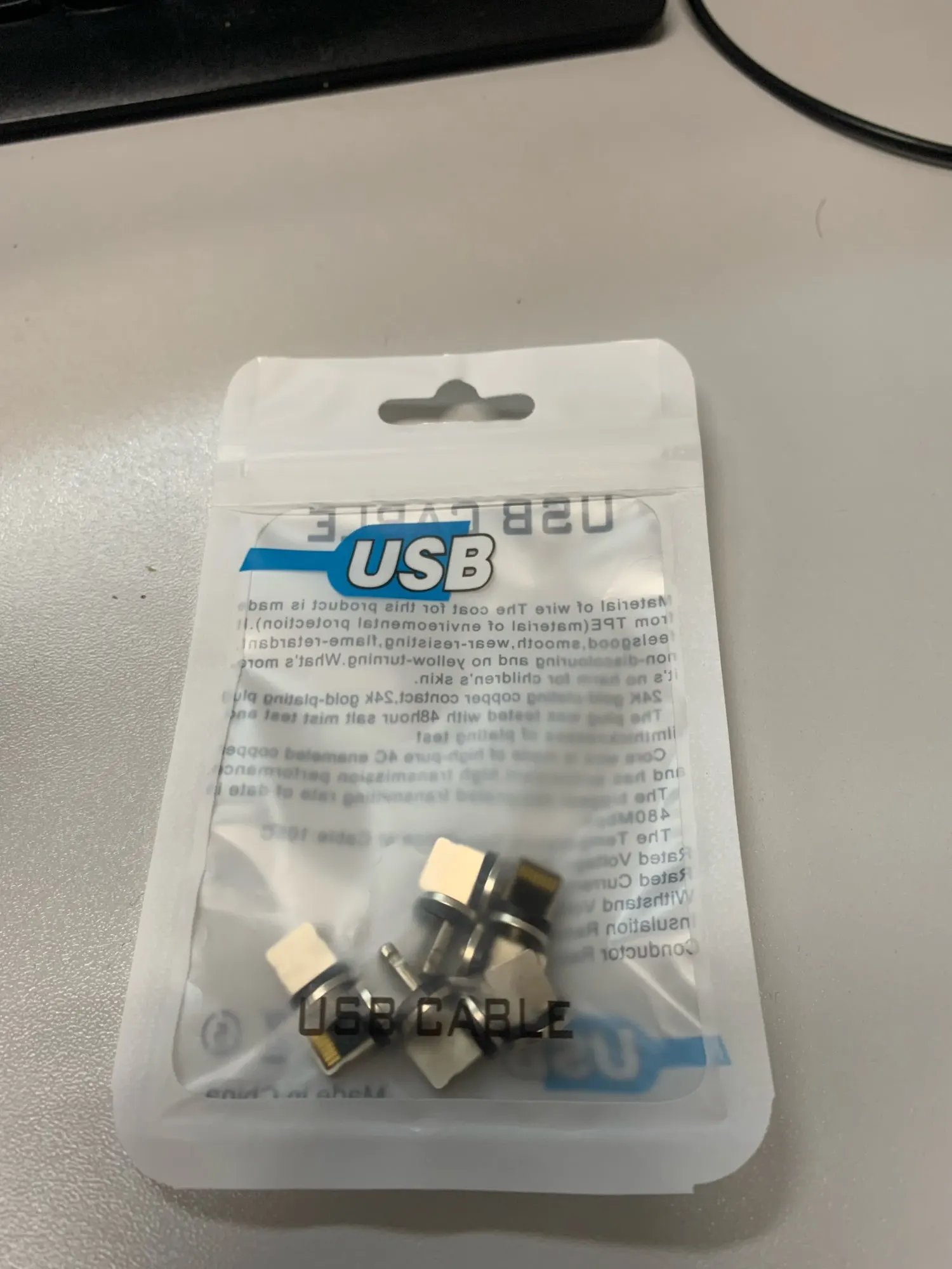 Доставлено чуть больше, чем за полтора месяца. Пополнил запасы усб наконечников - как-то все разошлись по устройствам. Кабелями с магнитными насадками очень доволен.