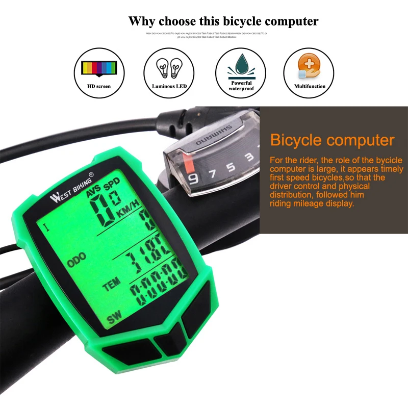 Название велосипедного компьютераWEST BIKING велосипедный Компьютер Водонепроницаемый 20 функций Спидометр Одометр велосипедный светящийся светодиодный беспроводной Велосипедный секундомер