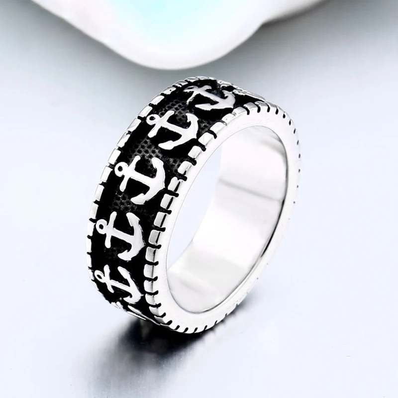 Простое украшение в стиле ретро, Европейская и американская индивидуальность, кольцо из нержавеющей стали с якорем, мужские Модные аксессуары, подарок для байкера