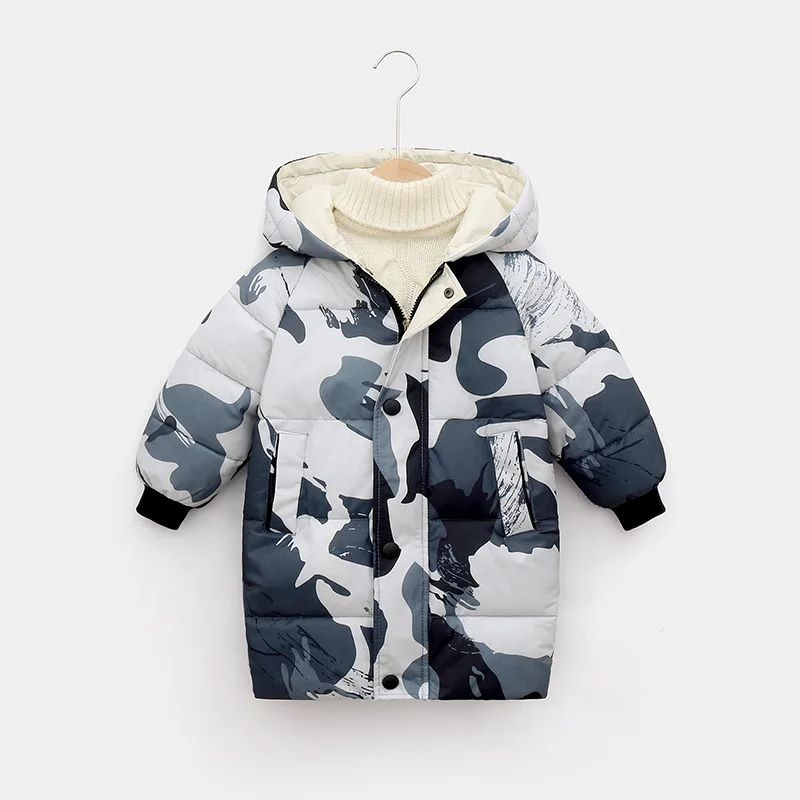 Пуховик длинный детский из чистого хлопка, утепленный, зимний, 2022