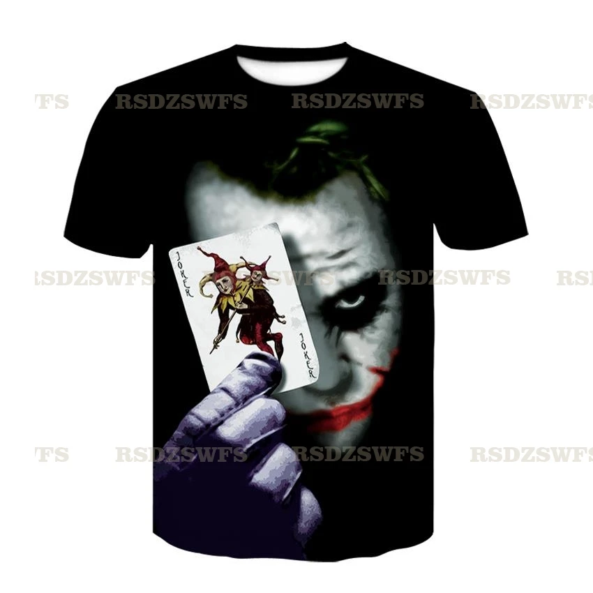 2021 модная футболка с 3D принтом, детская одежда, футболки с изображением лица Джокера, модная футболка клоуна с коротким рукавом для косплея, Мужскаяженская футболка