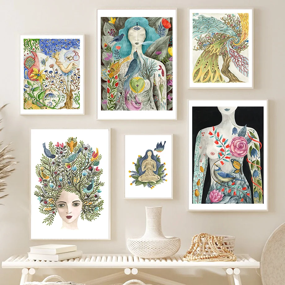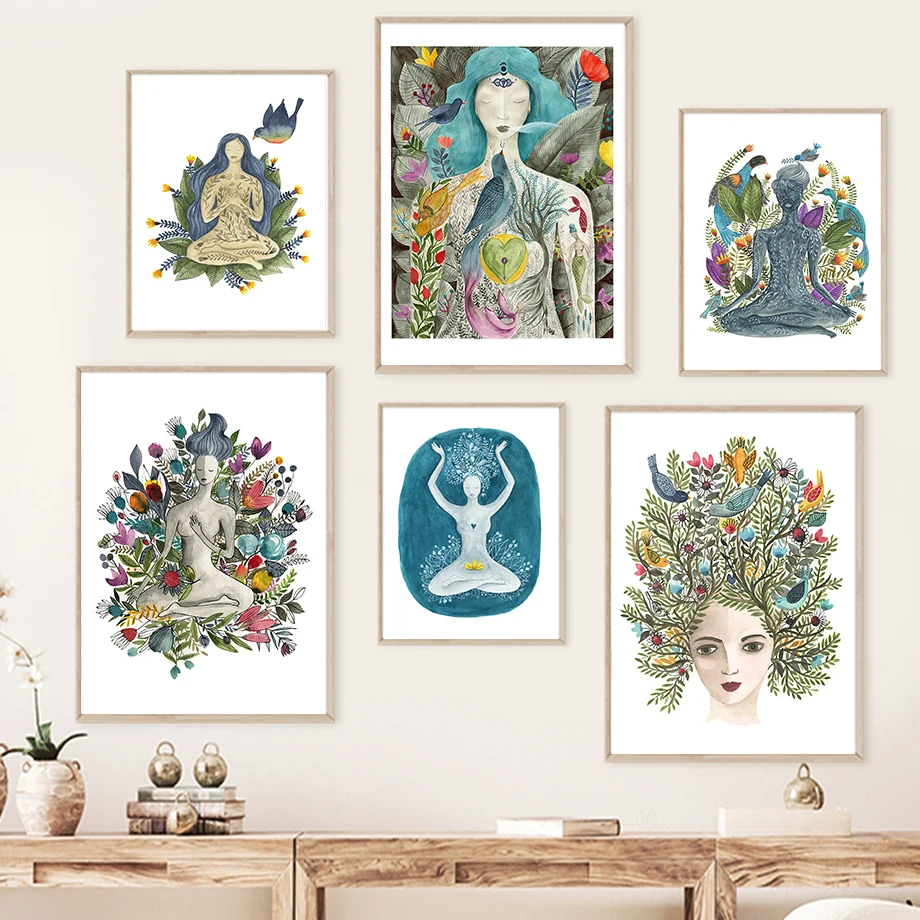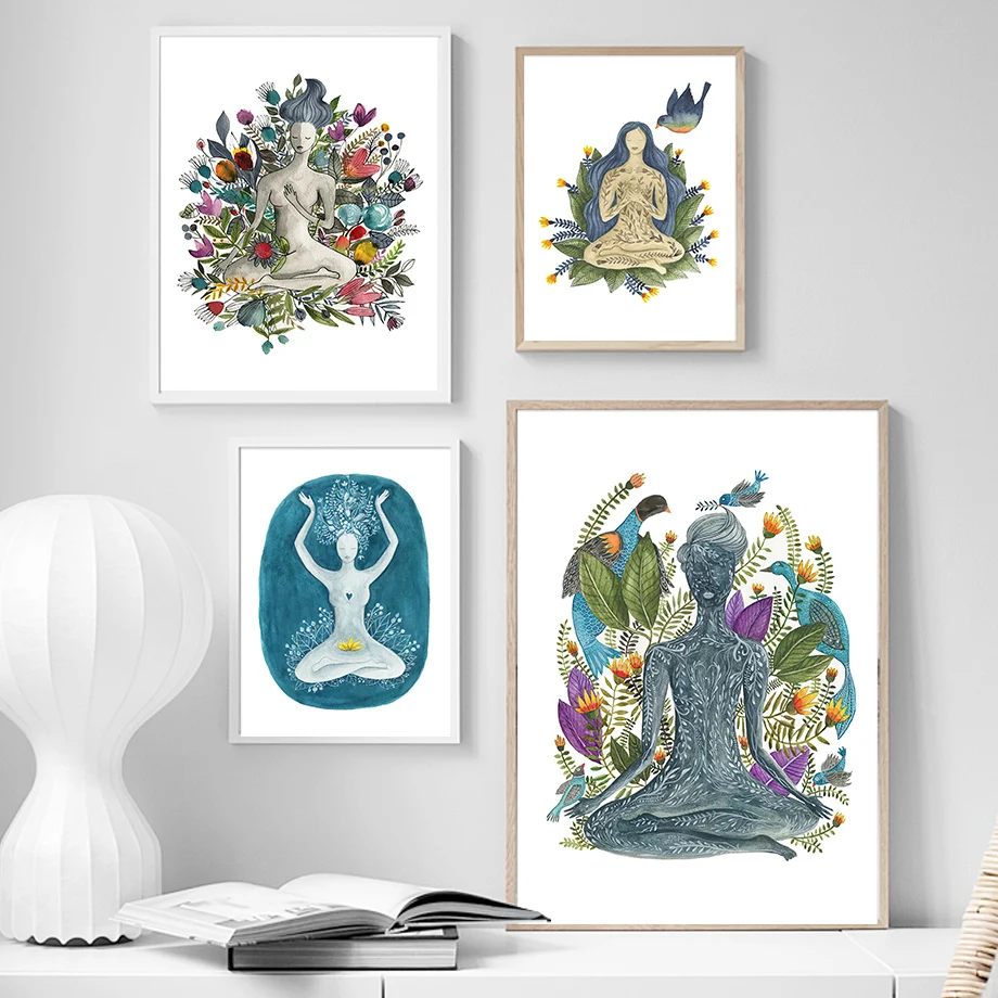 Настенная картина для йоги, искусство на холсте, скандинавские плакаты и принты, настенные картины для декора гостиной