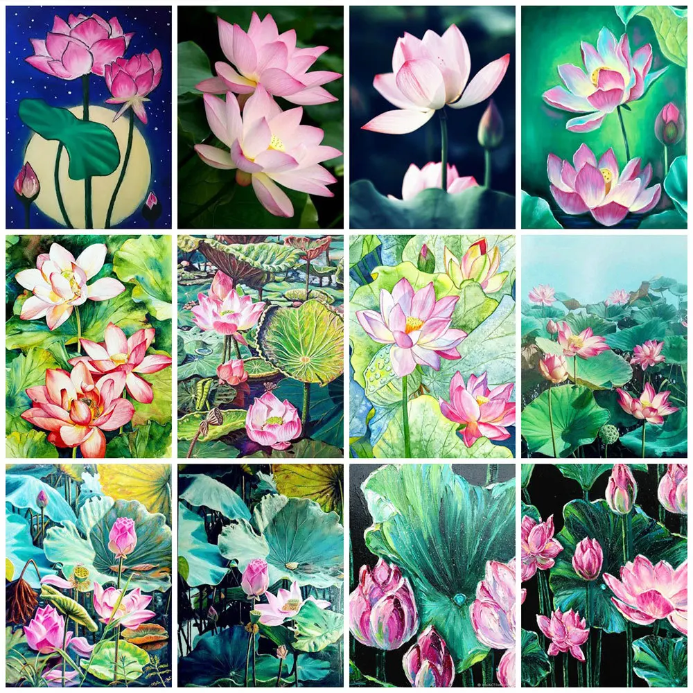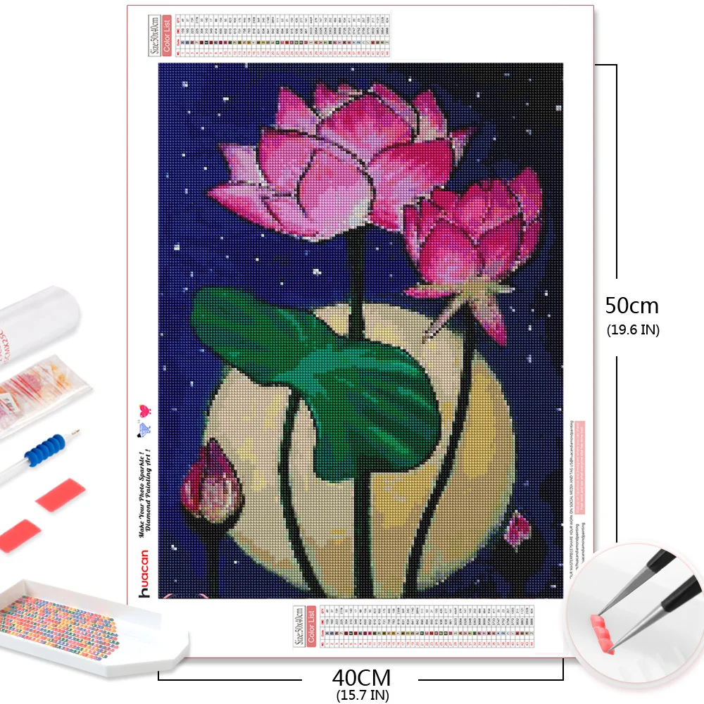 Алмазная 5D картина HUACAN с лотосом, алмазная вышивка, цветочное оформление для дома