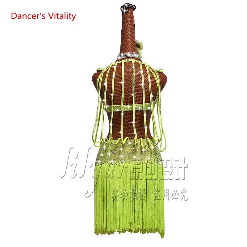Платье женское для латиноамериканских танцев, с бахромой и камнями