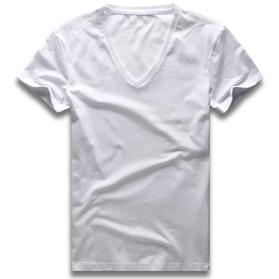 Мужская футболка с V-образным вырезом, коротким рукавом и широким воротником