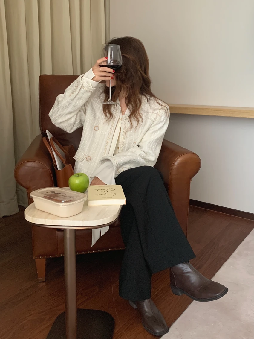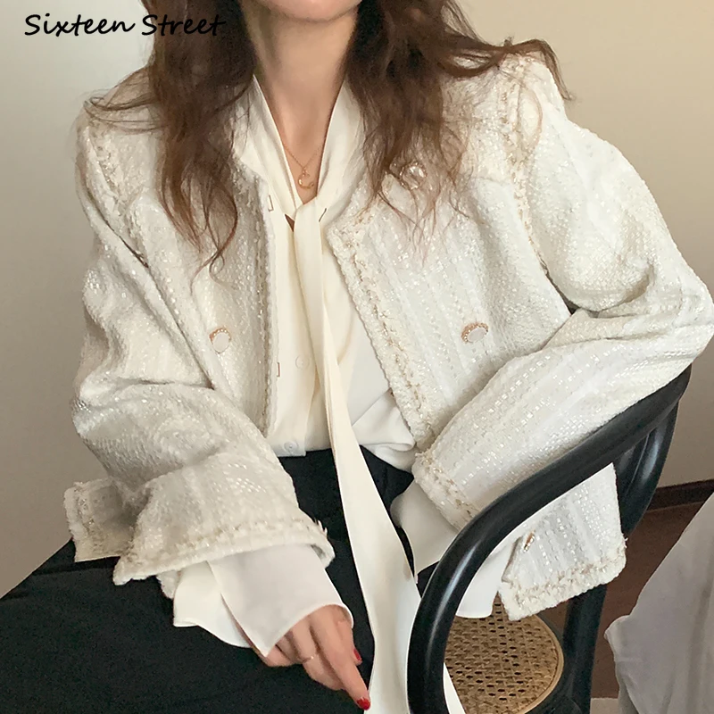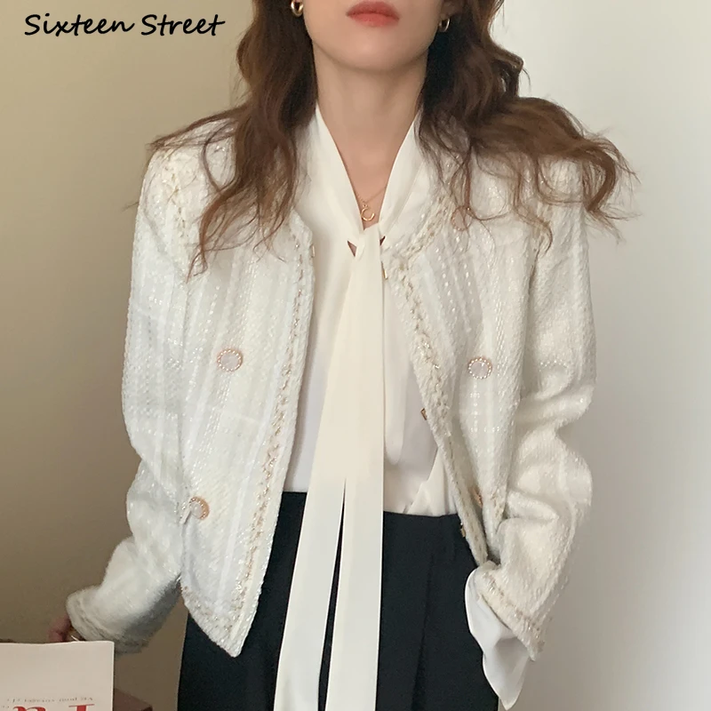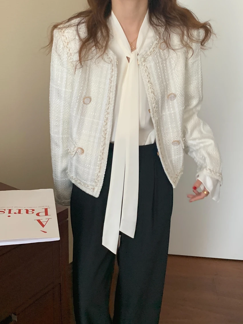 Женское шерстяное пальто, бежевое твидовое винтажное пальто на пуговицах, с круглым вырезом, Осень-зима 2021