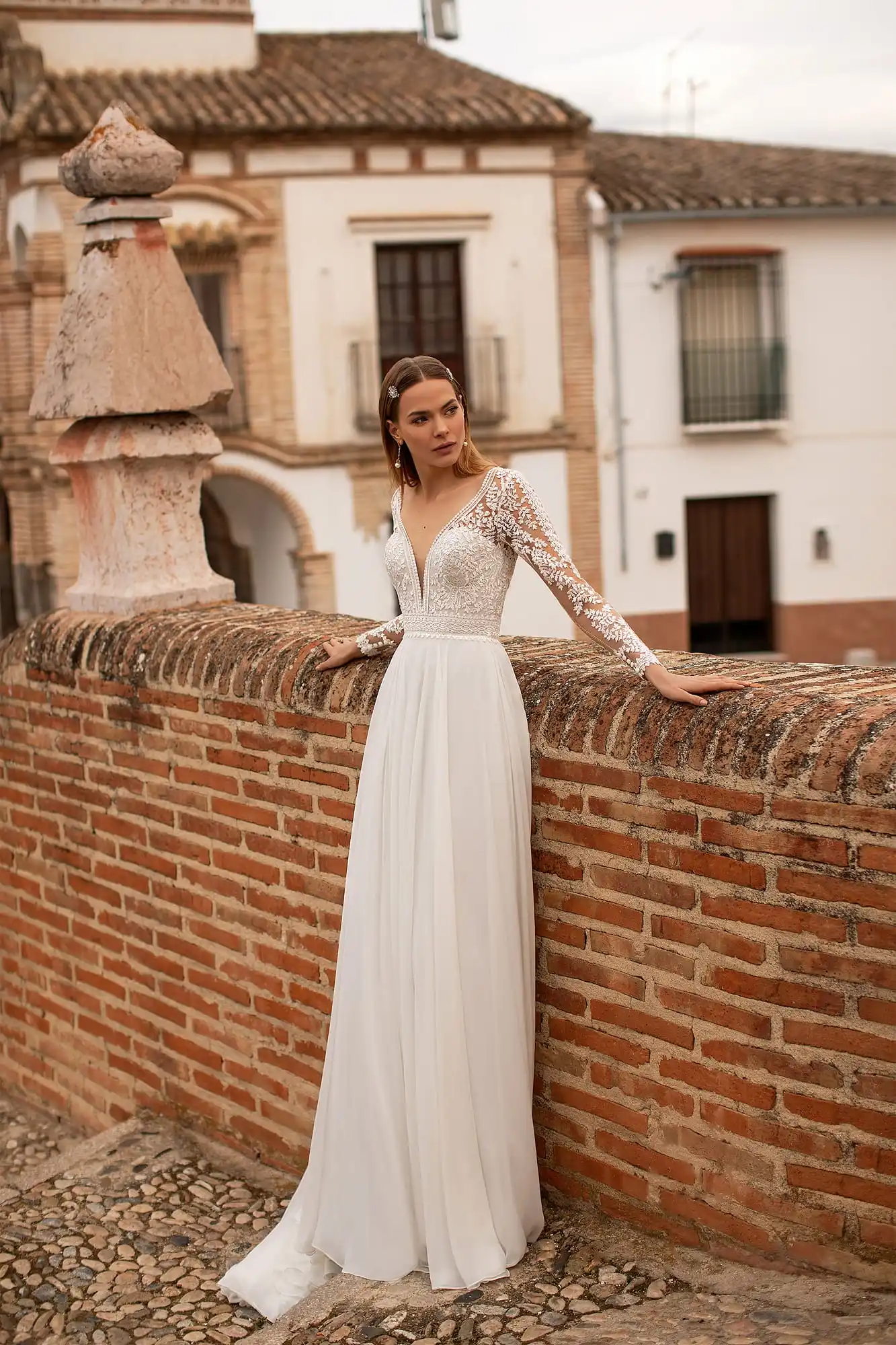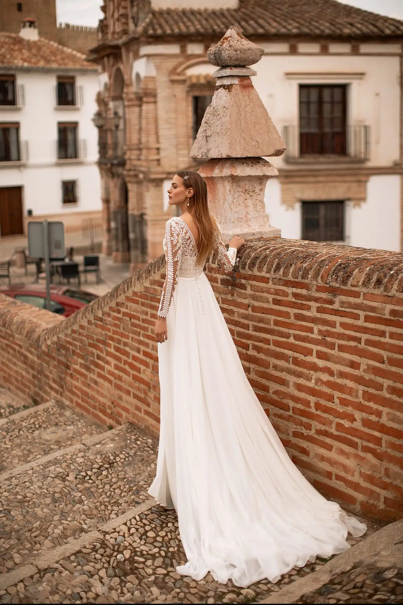 Женское шифоновое платье с длинным рукавом, простое свадебное плать...