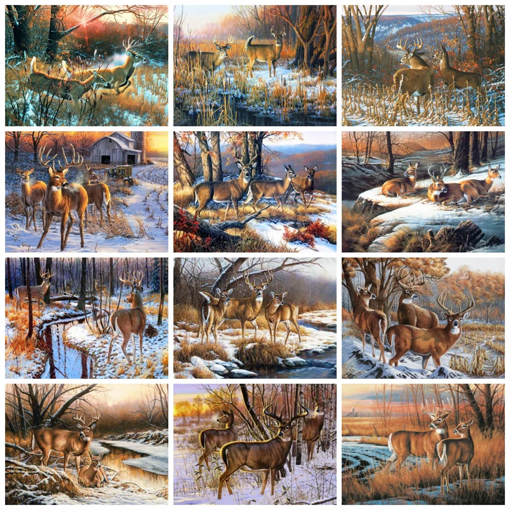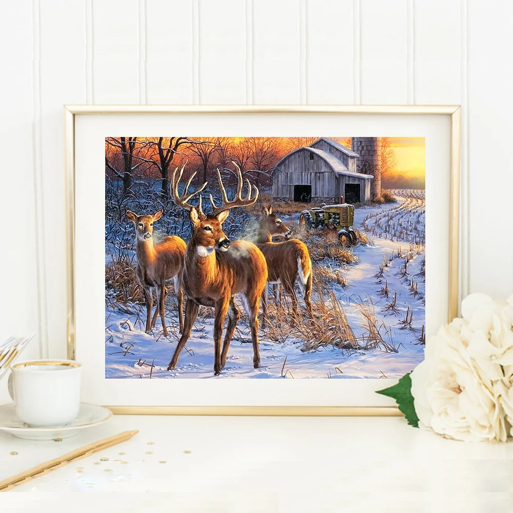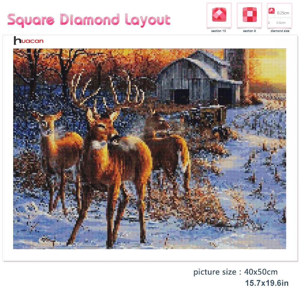 Huacan Diy алмазная живопись олень животное Алмазная мозаика Зимний снег искусство Вышивка крестиком домашний декор