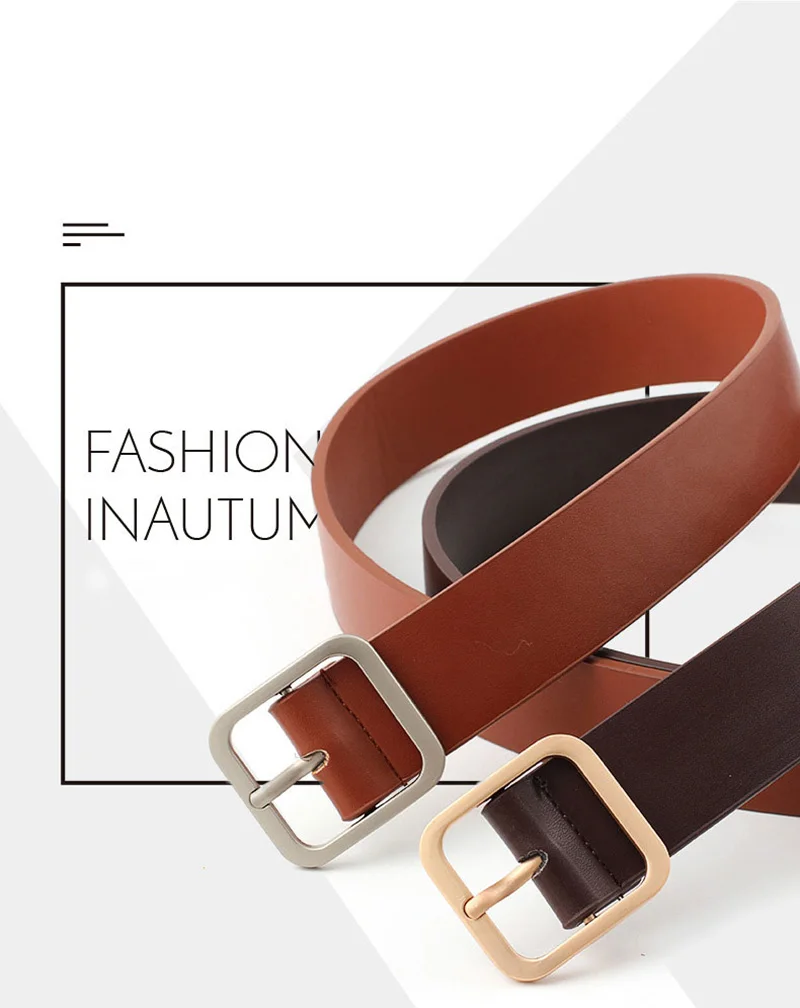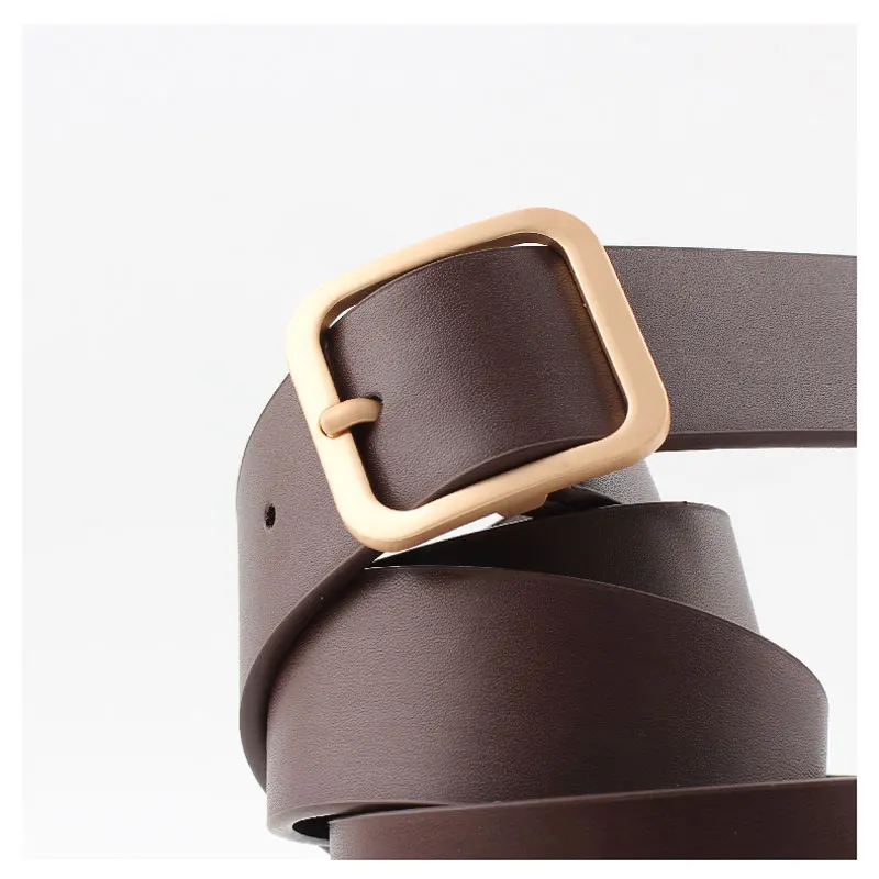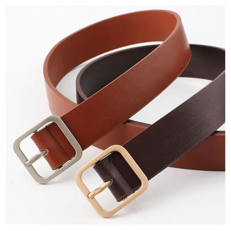 Ремень с квадратной пряжкой Женский, модный простой студенческий пояс из искусственной кожи с винтажным украшением для джинсов и платьев