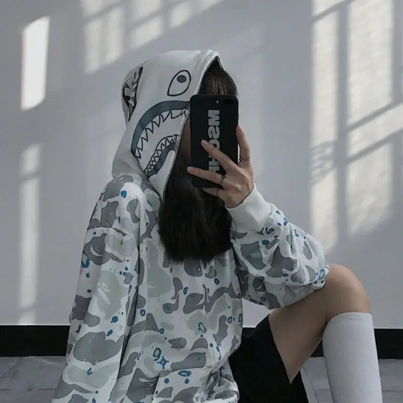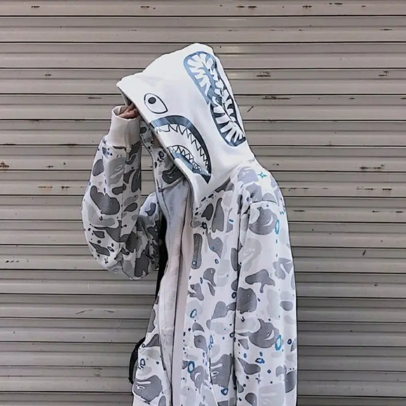 Толстовка Bape в стиле хип-хоп с капюшоном и принтом акулы