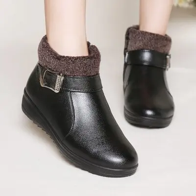 Женские зимние повседневные ботильоны на платформе и высоком блочном каблуке, женские замшевые флисовые теплые зимние ботинки с застежкой-молнией и пряжкой