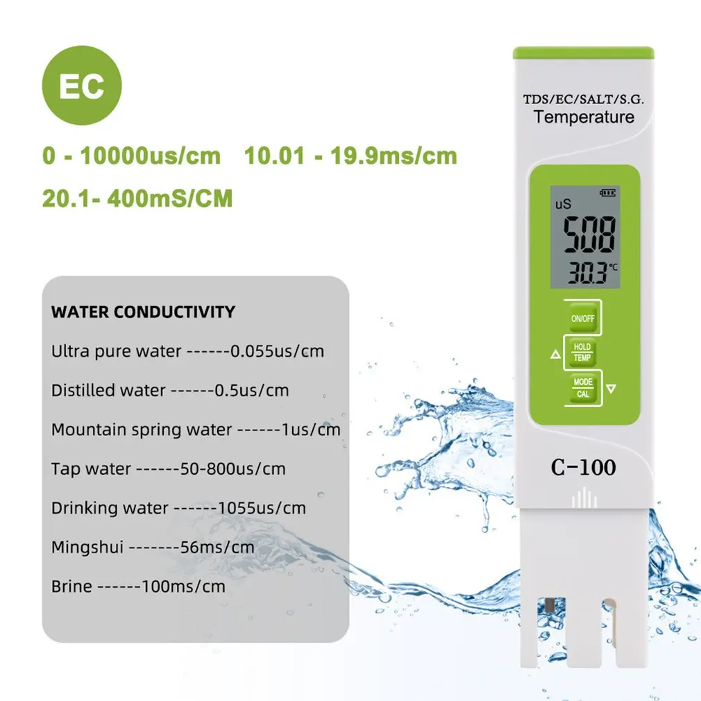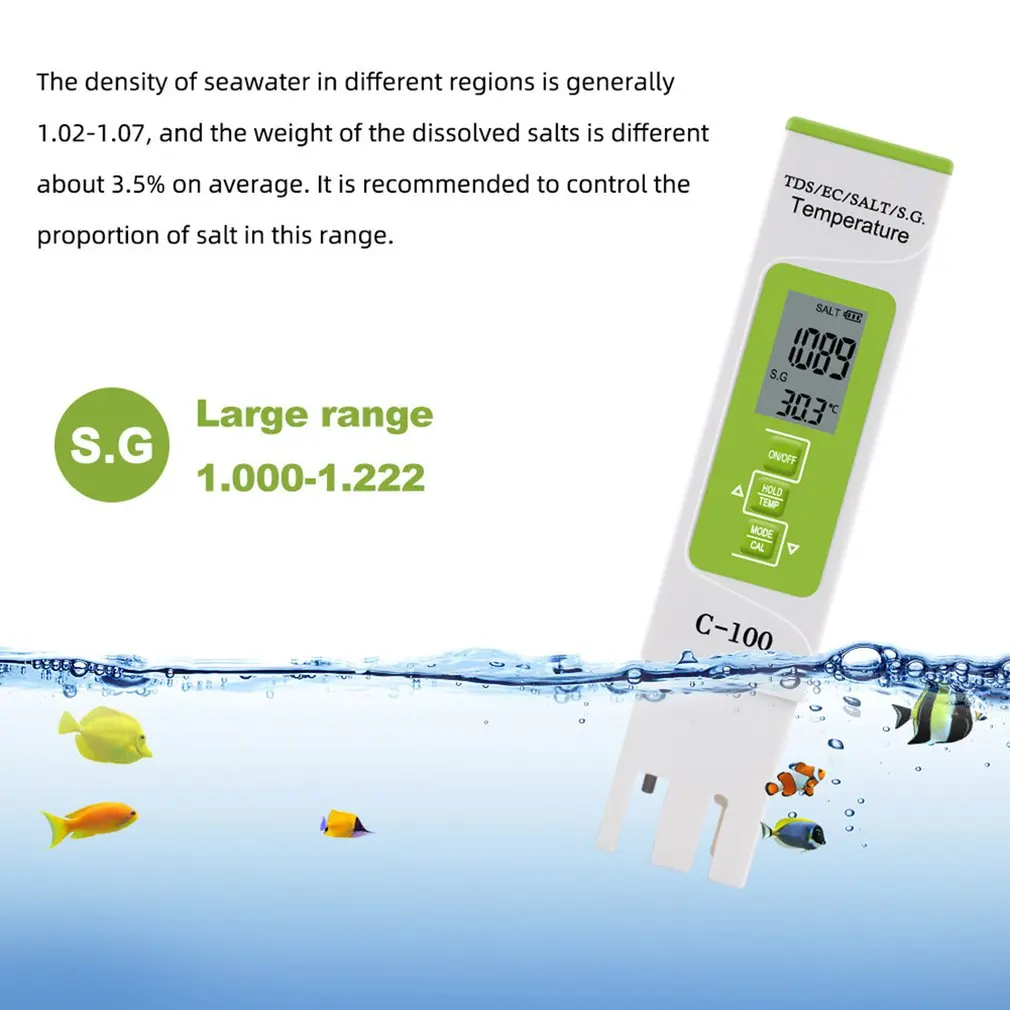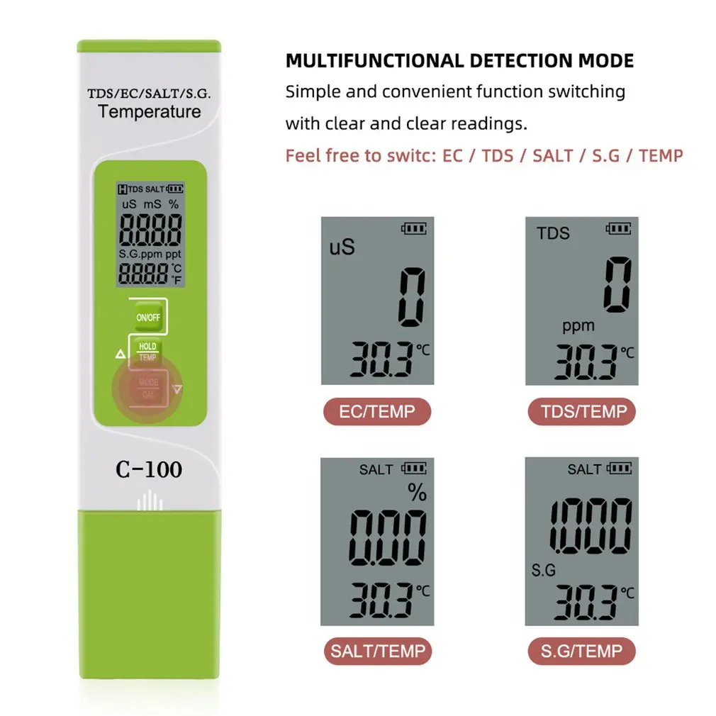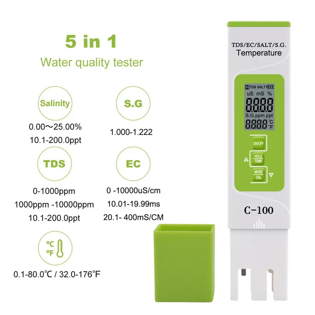Цифровой измеритель температуры C-100 5 в 1 для Tdsecсоленостиsg, тестер качества воды для дома, бассейна, питьевой воды