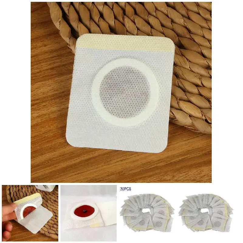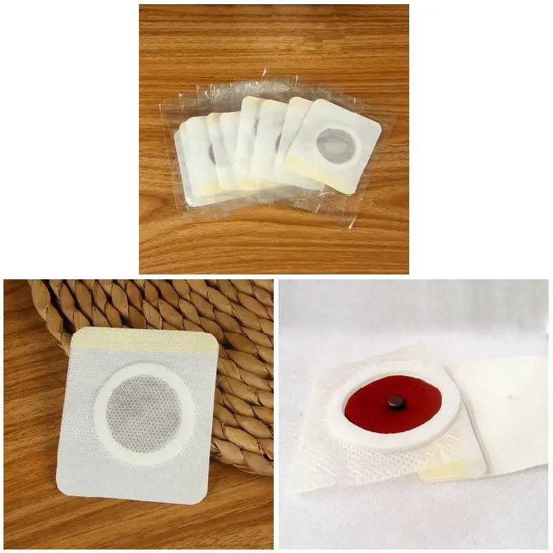Вставьте пластырь для похудения на пупок, а затем закрепите клеем.