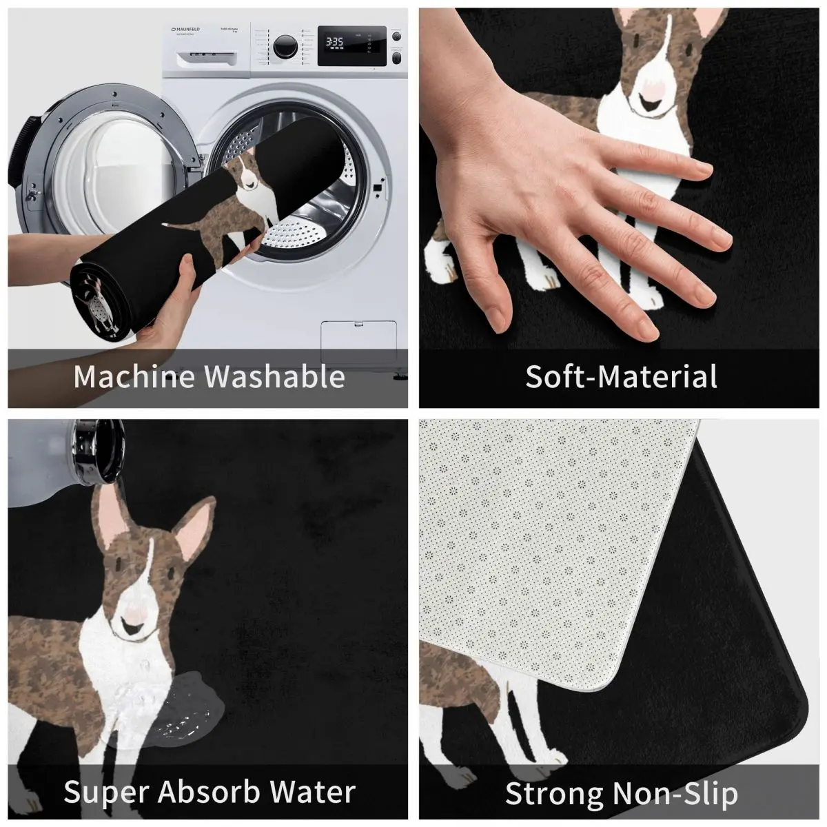 Английский коврик с рисунком Бультерьера из полиэстера, коврик, нескользящий прочный вход, для кухни, спальни, балкона, мультяшный