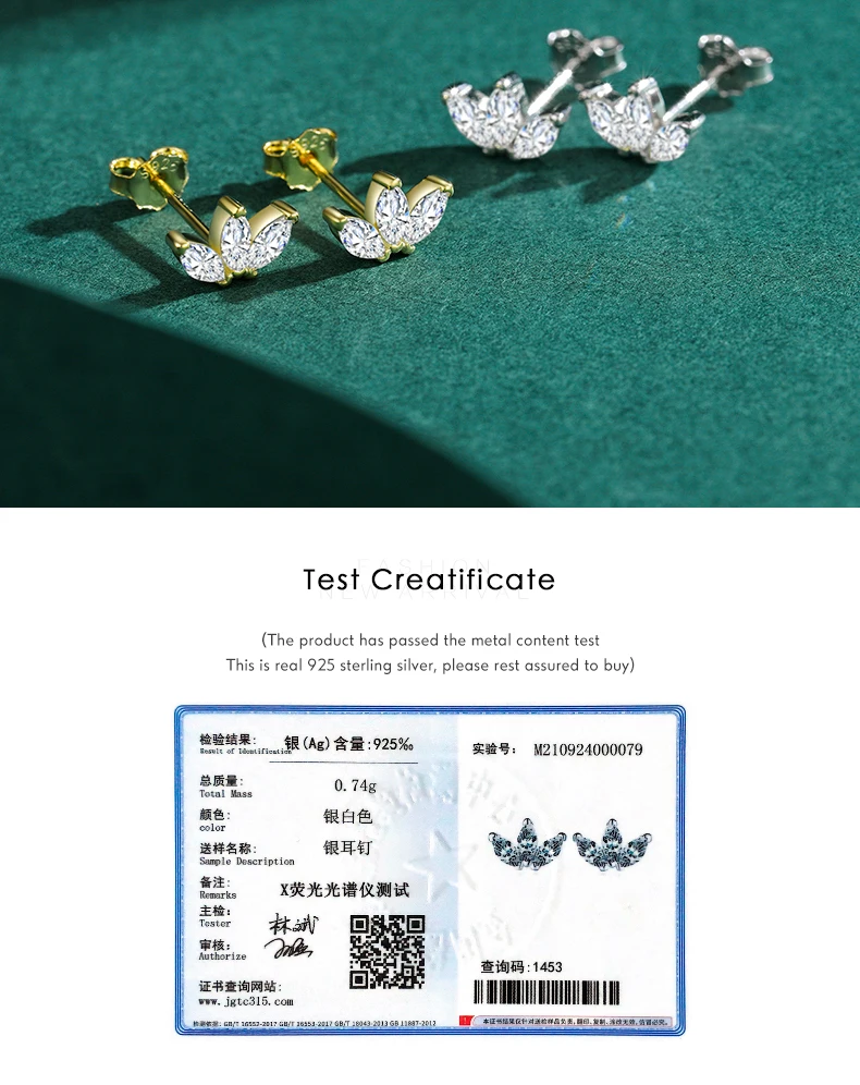 Серьги-гвоздики женские из серебра 100% пробы с фианитом