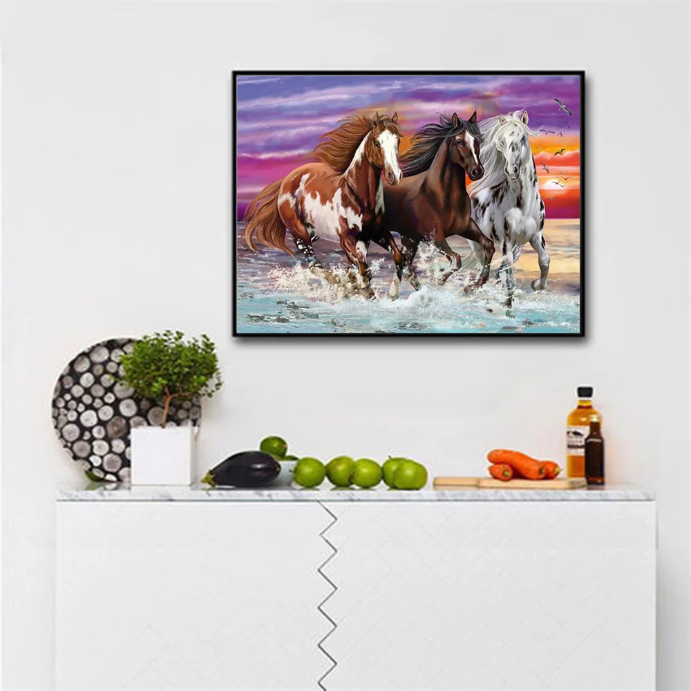 Алмазная живопись HUACAN 5d сделай сам, домашний декор, вышивка крестиком, рисунок лошади, моря, мозаика с животными, река, Настенная Наклейка