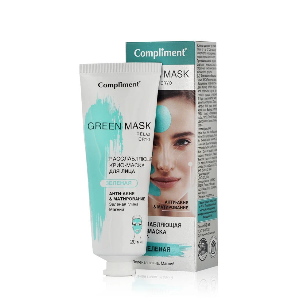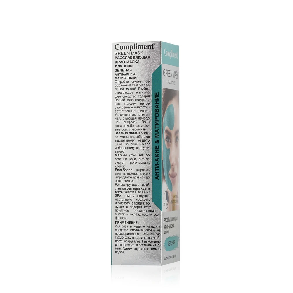 Крио - маска для лица Compliment Green Mask расслабляющая "анти-акне и матирование" зеленая 80 мл