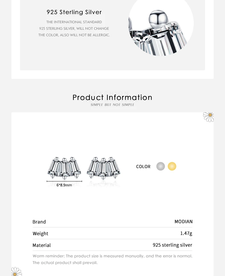 Modian 925 стерлингового серебра сверкающий круг, серьги со шпилько...