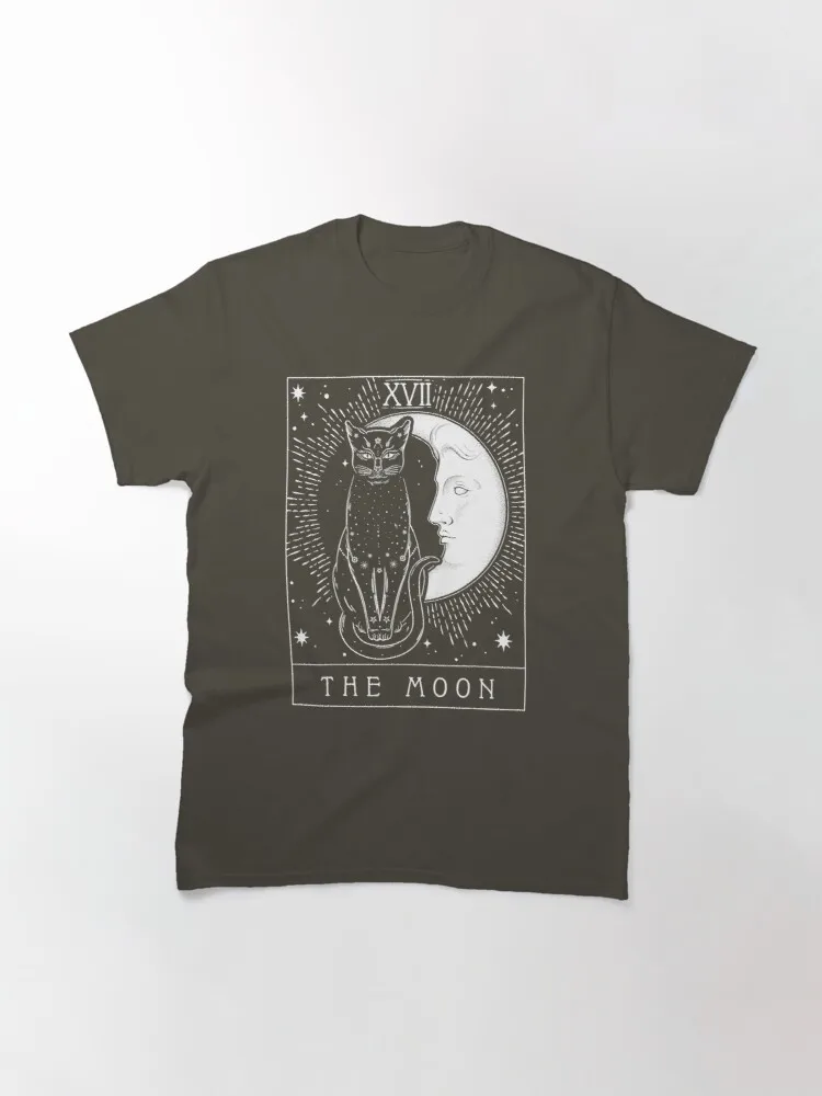 Футболка женская классическая с рисунком Таро карт Полумесяца и кота