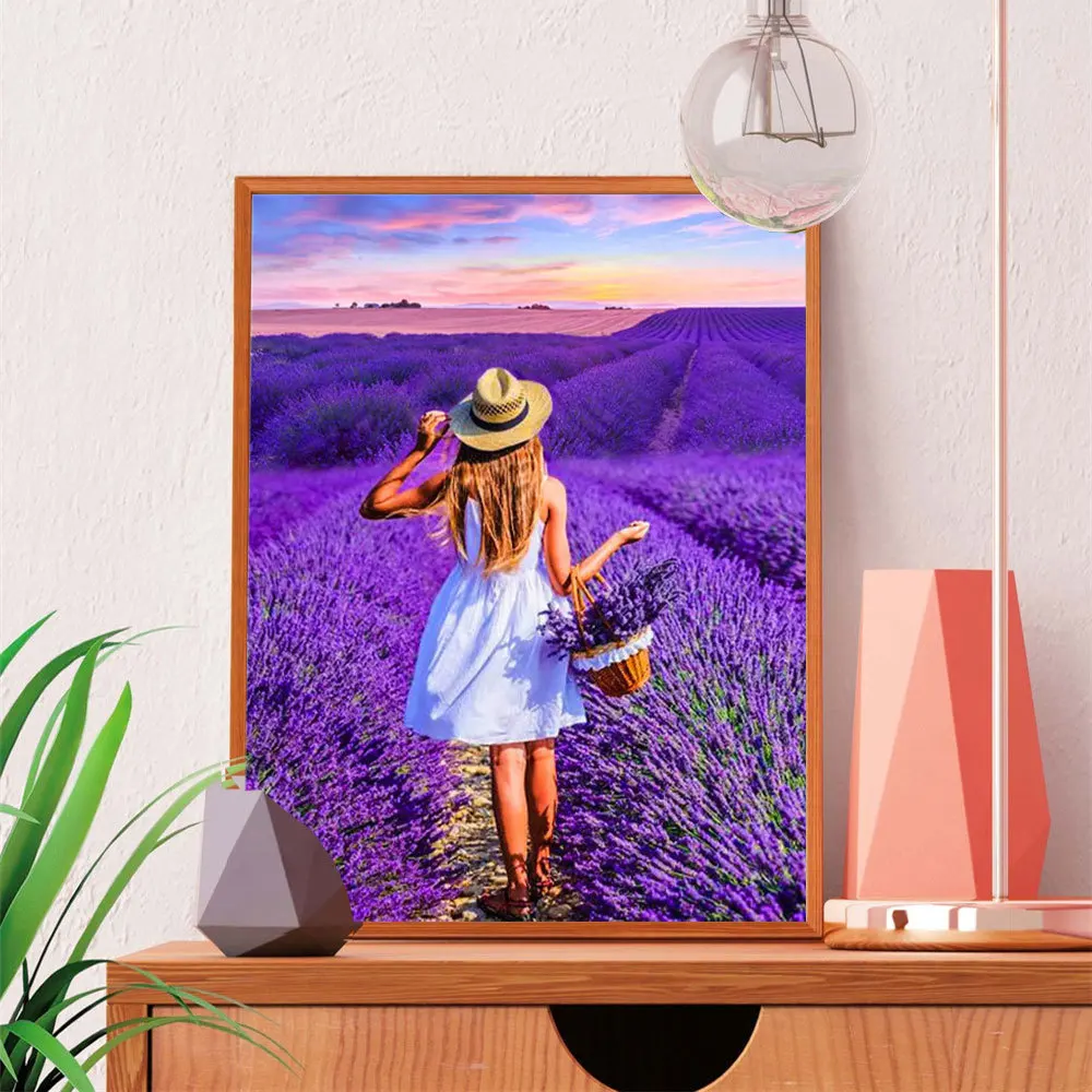 Набор для алмазной вышивки сделай сам HUACAN, мозаика с портретом девушки, с лавандовым цветком, полный набор для творчества, хобби